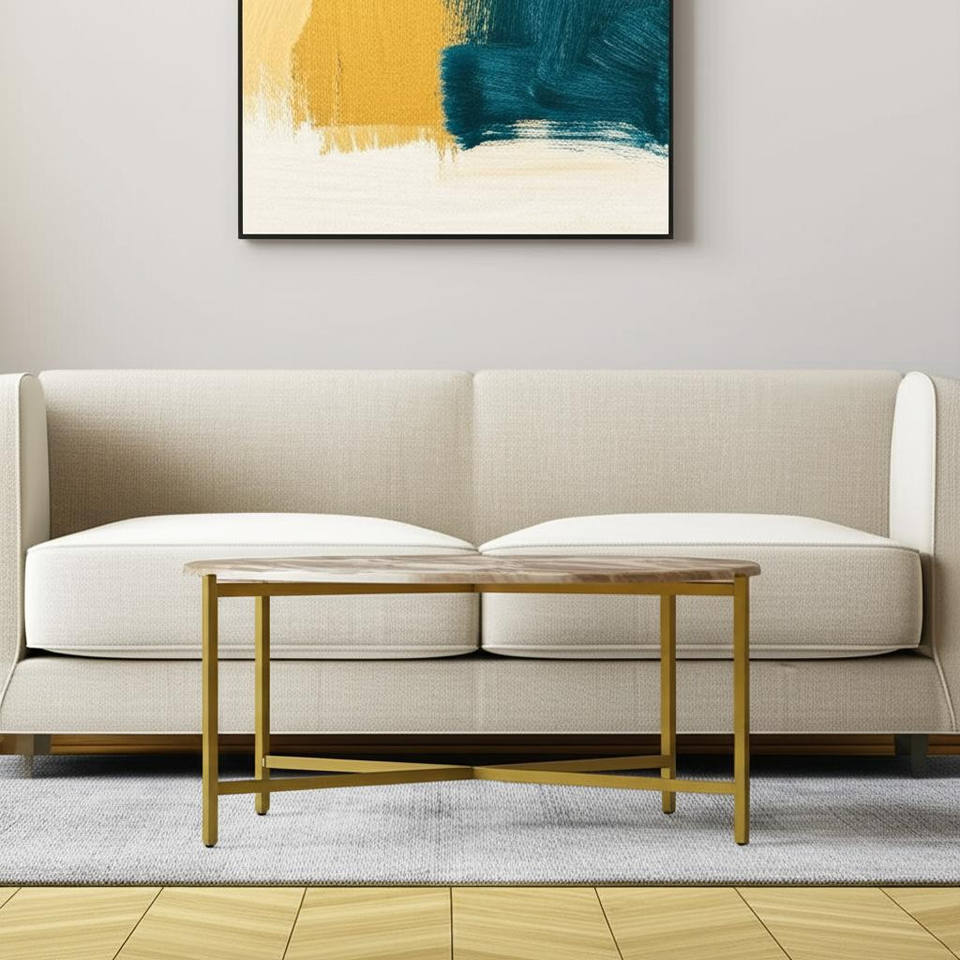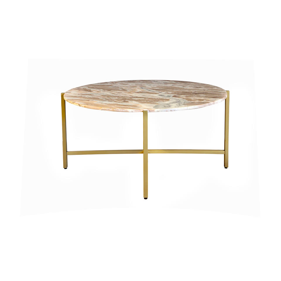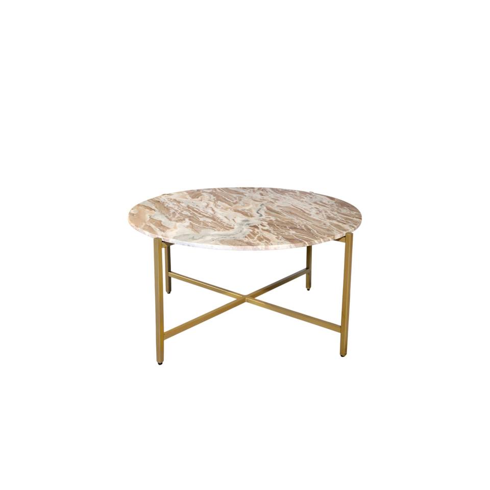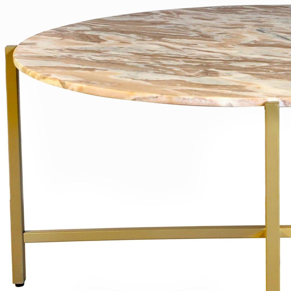 HMS 32\" Brown and Gold Genuine Marble and Metal Round Coffee Table