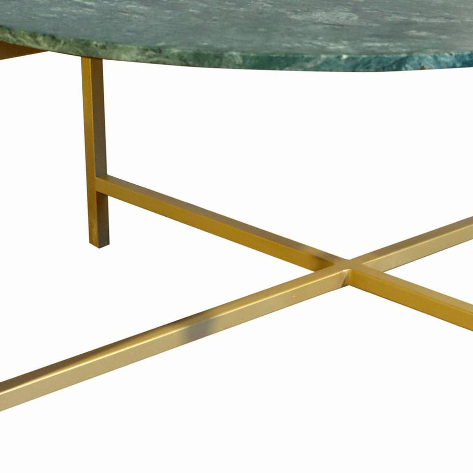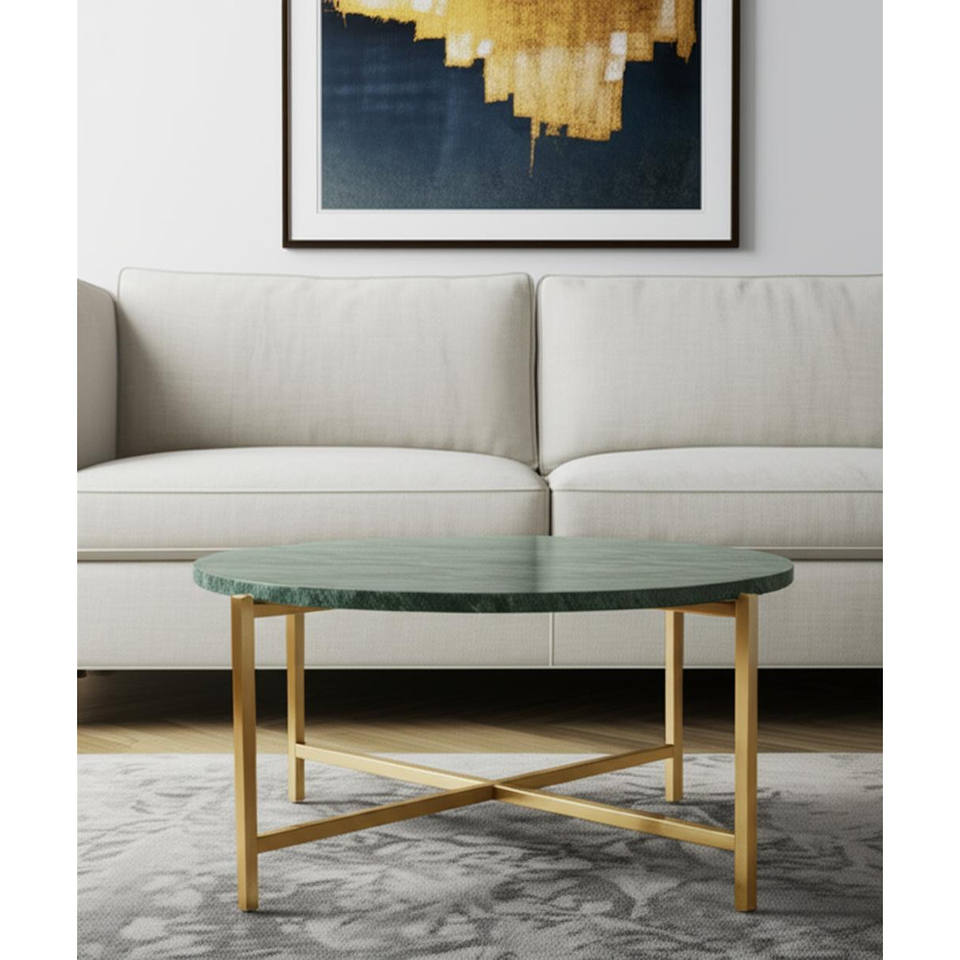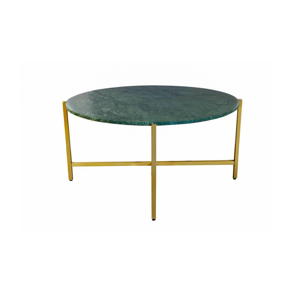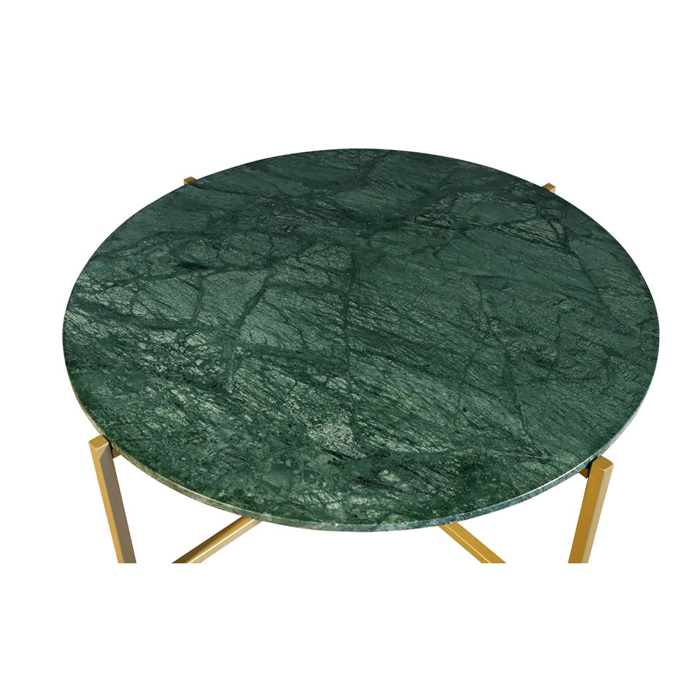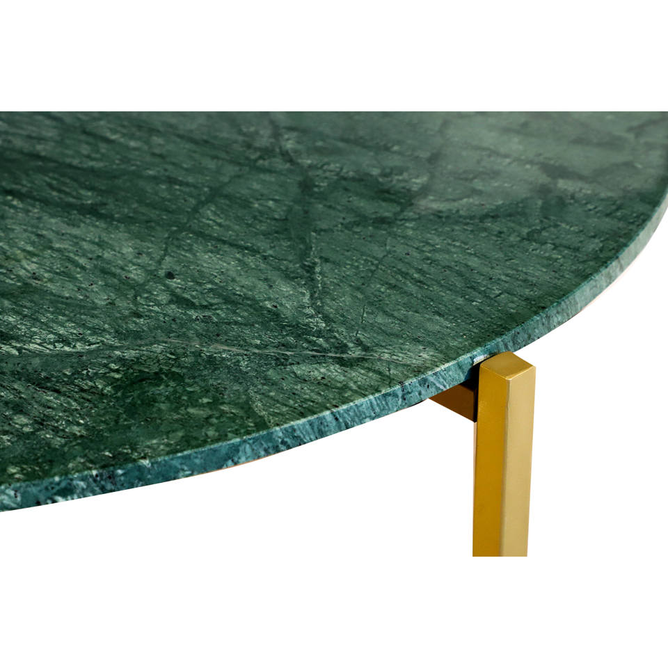 HMS 32\" Genuine Marble and Metal Round Coffee Table Green and Gold with Premium Quality and Elegant Design