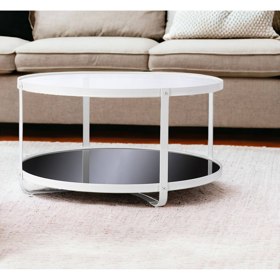 HMS 32\" Traditional Two-Tier Round Coffee Table Convertible White Glass and Metal Design for Living Room or Entry Indoor Use