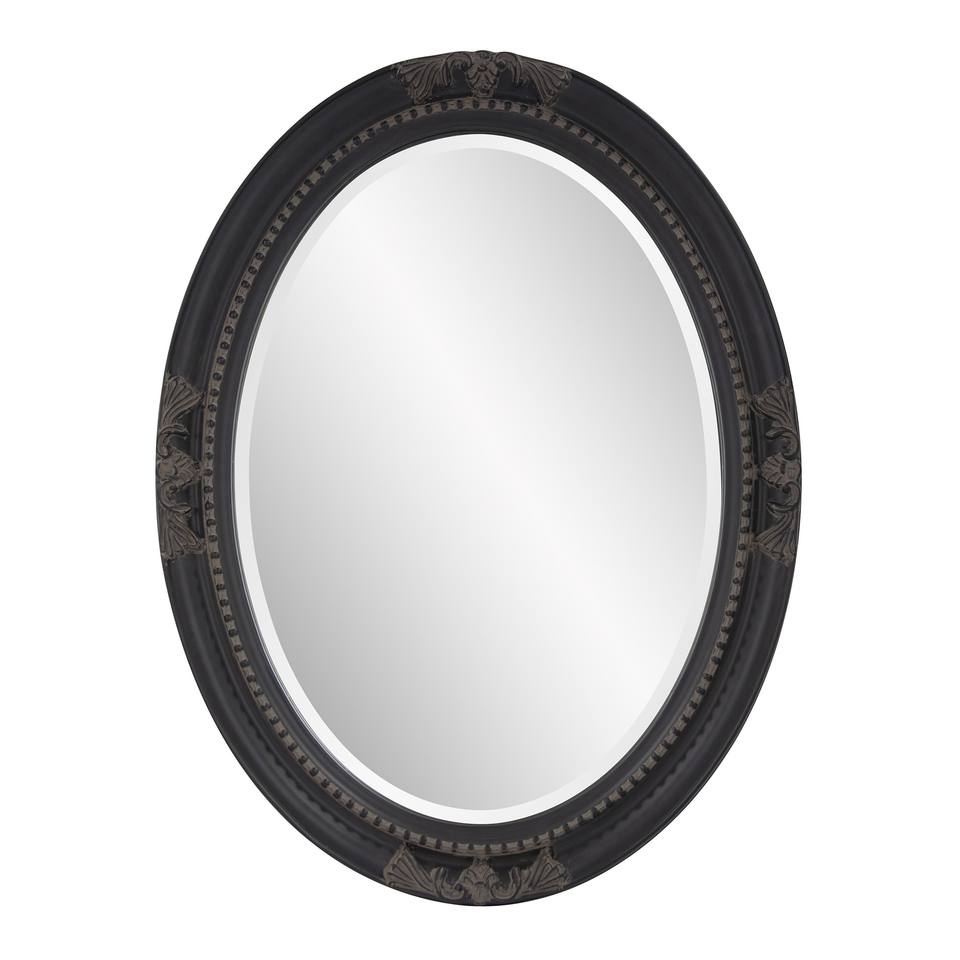 HMS 33 Black Ornate Oval Wood Framed Accent Mirror Handcrafted Wooden Crafts Boxes Wall Signs
