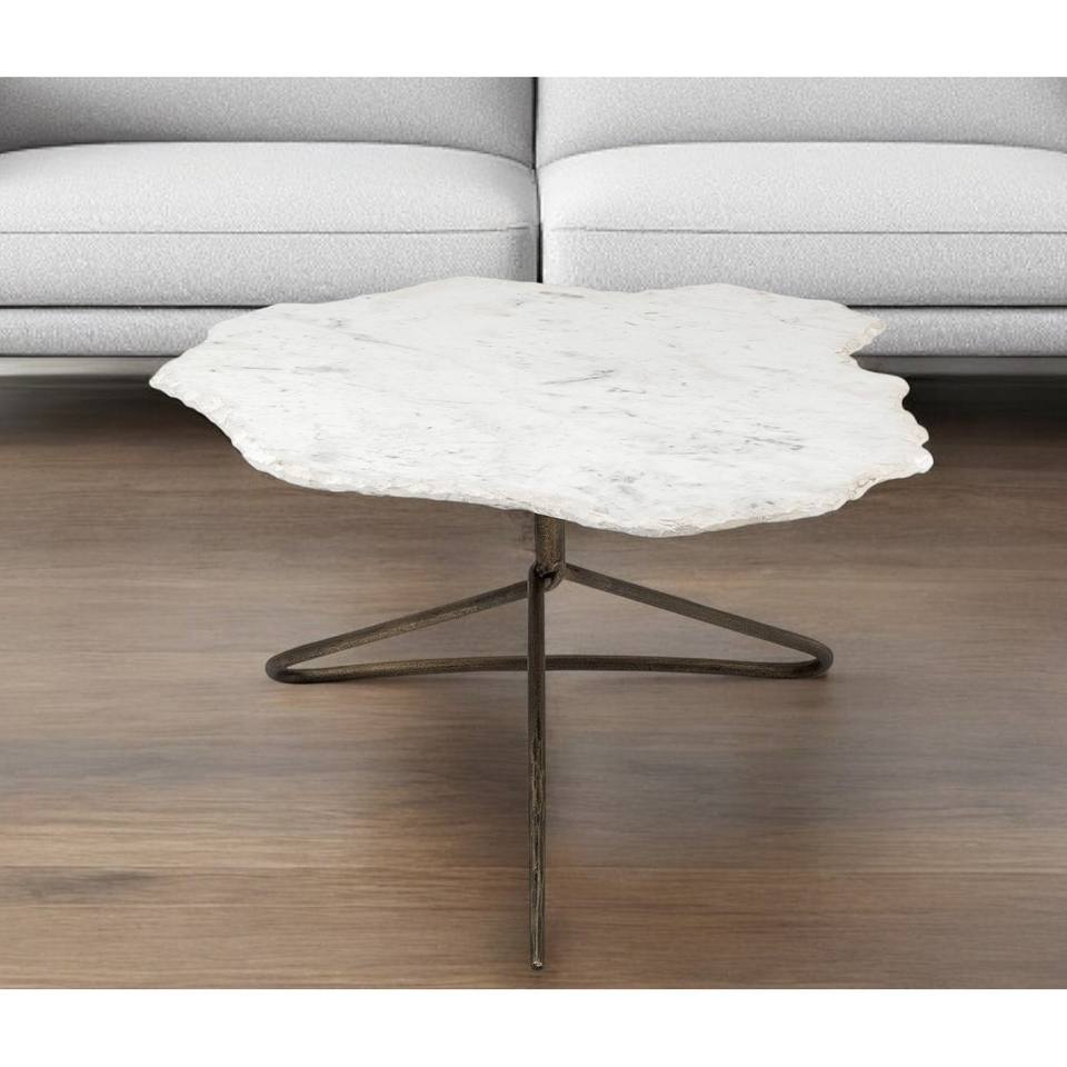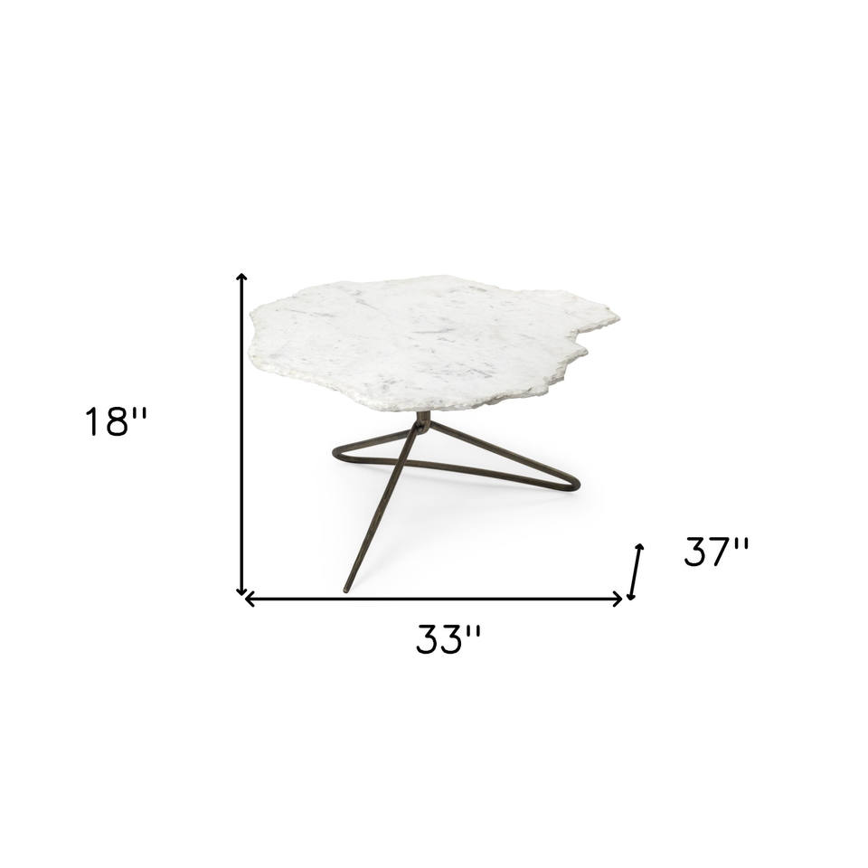 HMS 33 Genuine Marble and Iron Free Form Coffee Table White and Gold with Unique Design