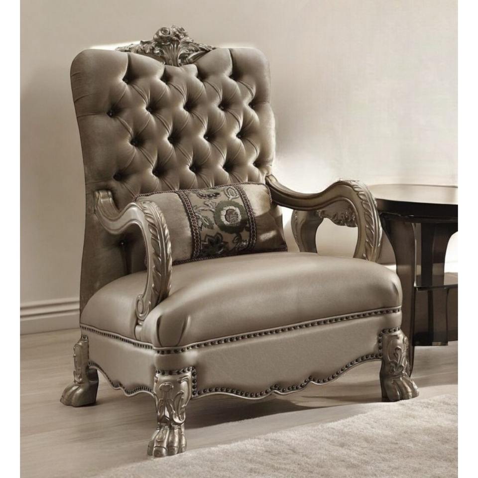 HMS 34\" Bone and Gold Velvet Tufted Chesterfield Chair with Toss Pillow for Living Room
