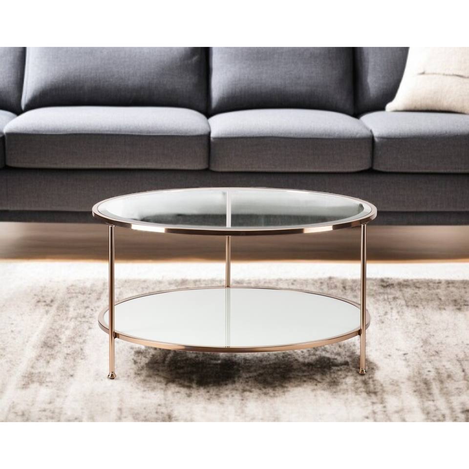 HMS 34\" Clear and Gold Round Coffee Table with Iron Elegant Glass Design