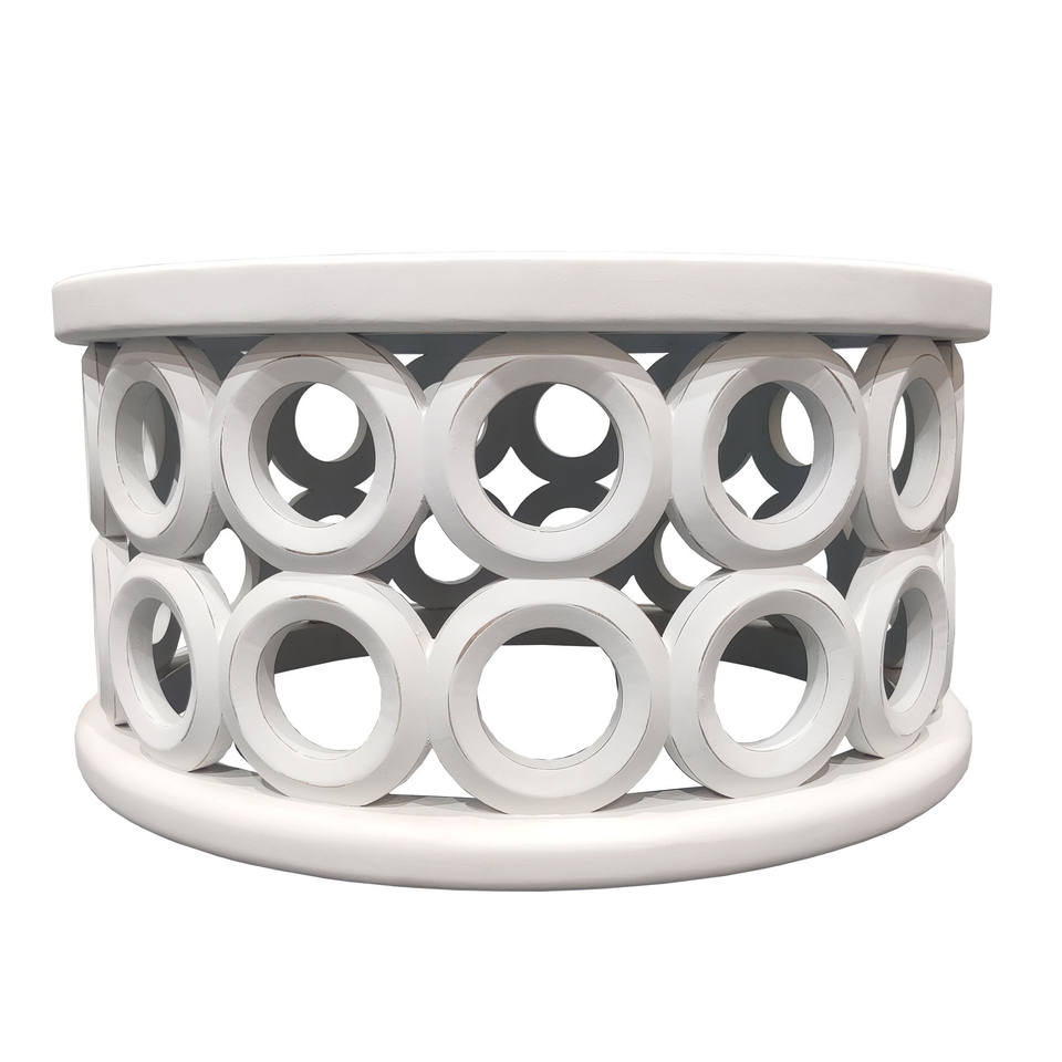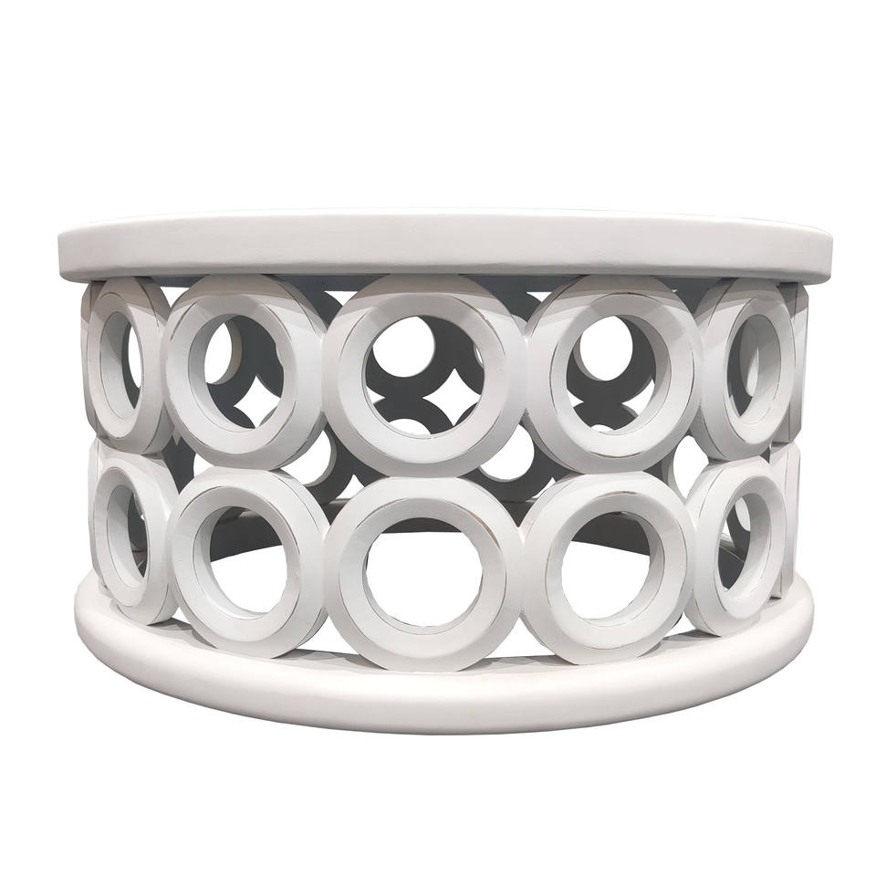HMS 36\" White Solid Mango Wood Round Coffee Table Convertible Tea Table Farmhouse Design for Indoor Living Room Furniture