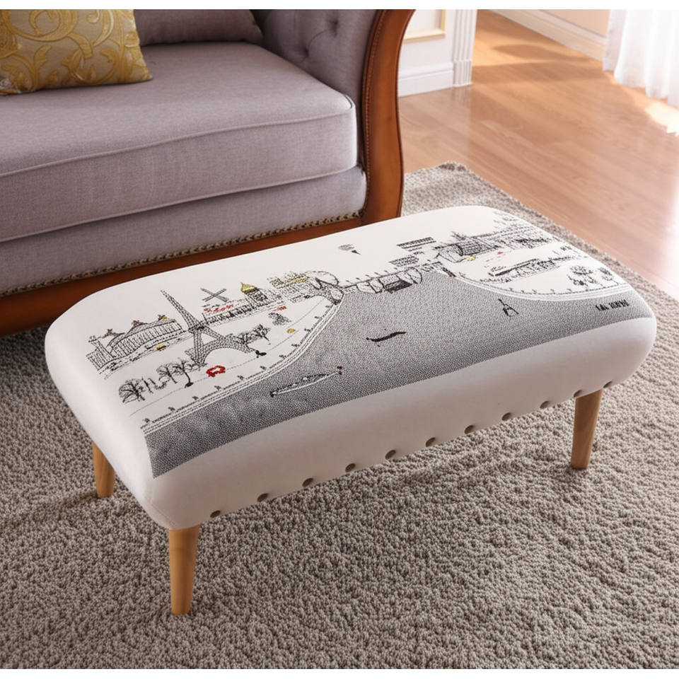 HMS 38\" Cream Wool Brown Leather Ottoman Foldable Extendable Storage Stool for Babies Kids Bedrooms Warehouses Outdoor Gym Use