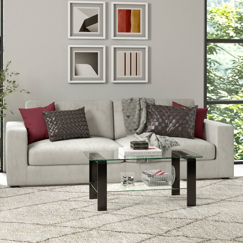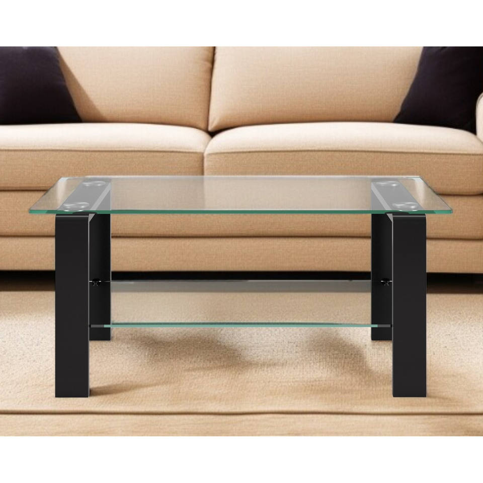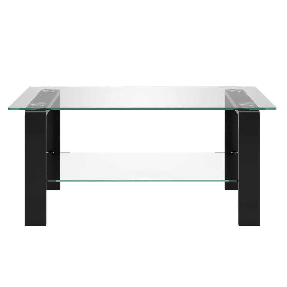 HMS 40\" Modern Simple Black Tempered Glass and Steel Coffee Table with Shelf Farmhouse Living Room Furniture