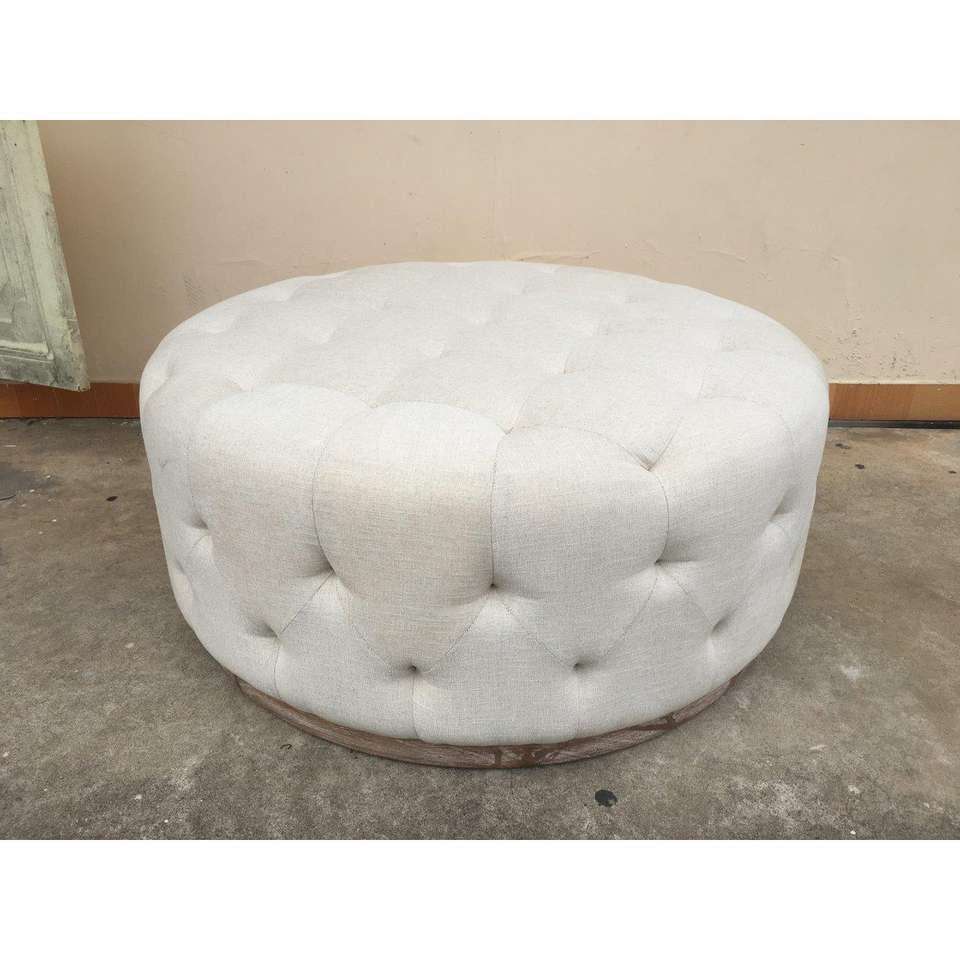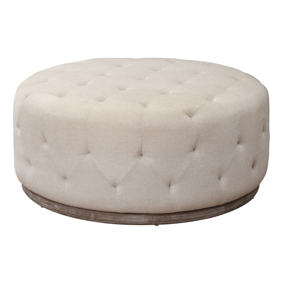 HMS 42\" Ivory Velvet and Brown Tufted Round Ottoman Stools & Ottomans Product Category