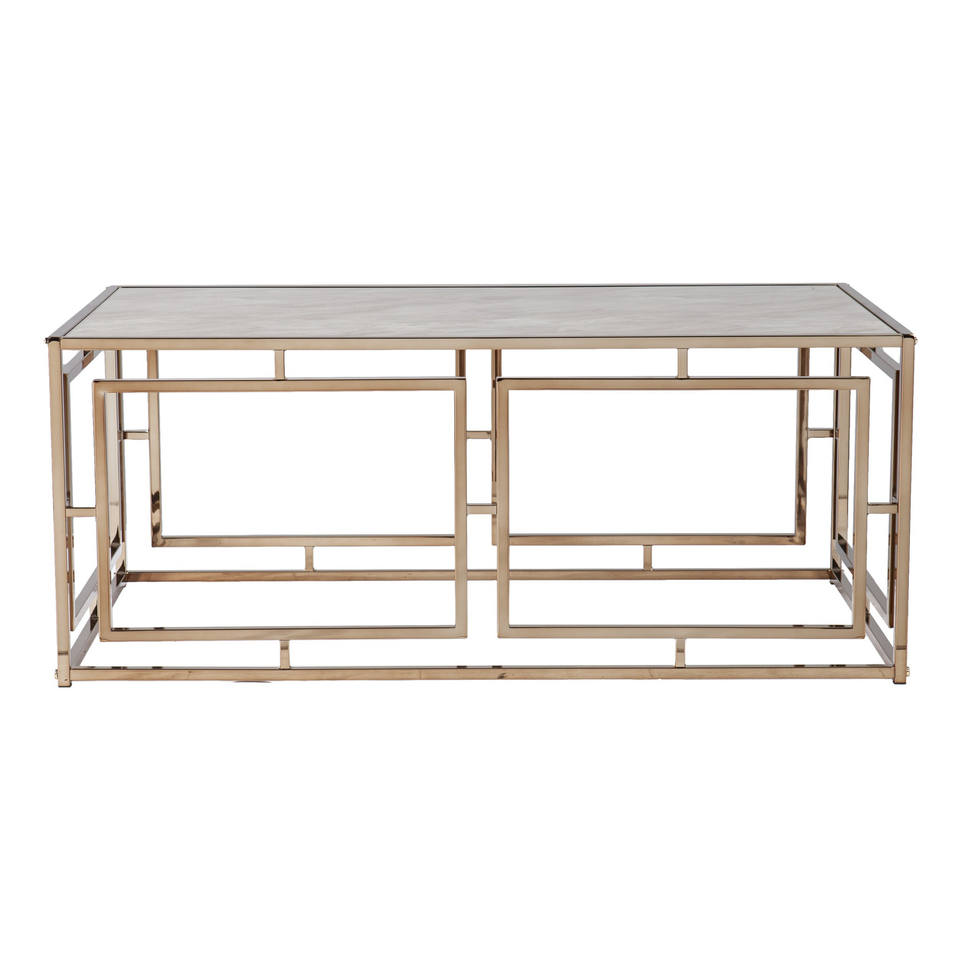 HMS 44\" Champagne Glass and Metal Rectangular Coffee Table