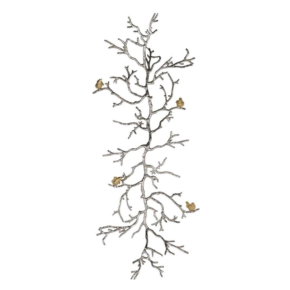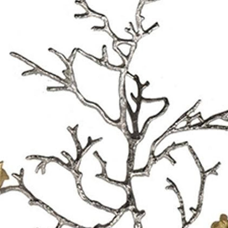 HMS 44\" Silver and Gold Aluminum Hanging Sculpture Birds Branches Hard Enamel Polished Plated Tableware Dimensional Model