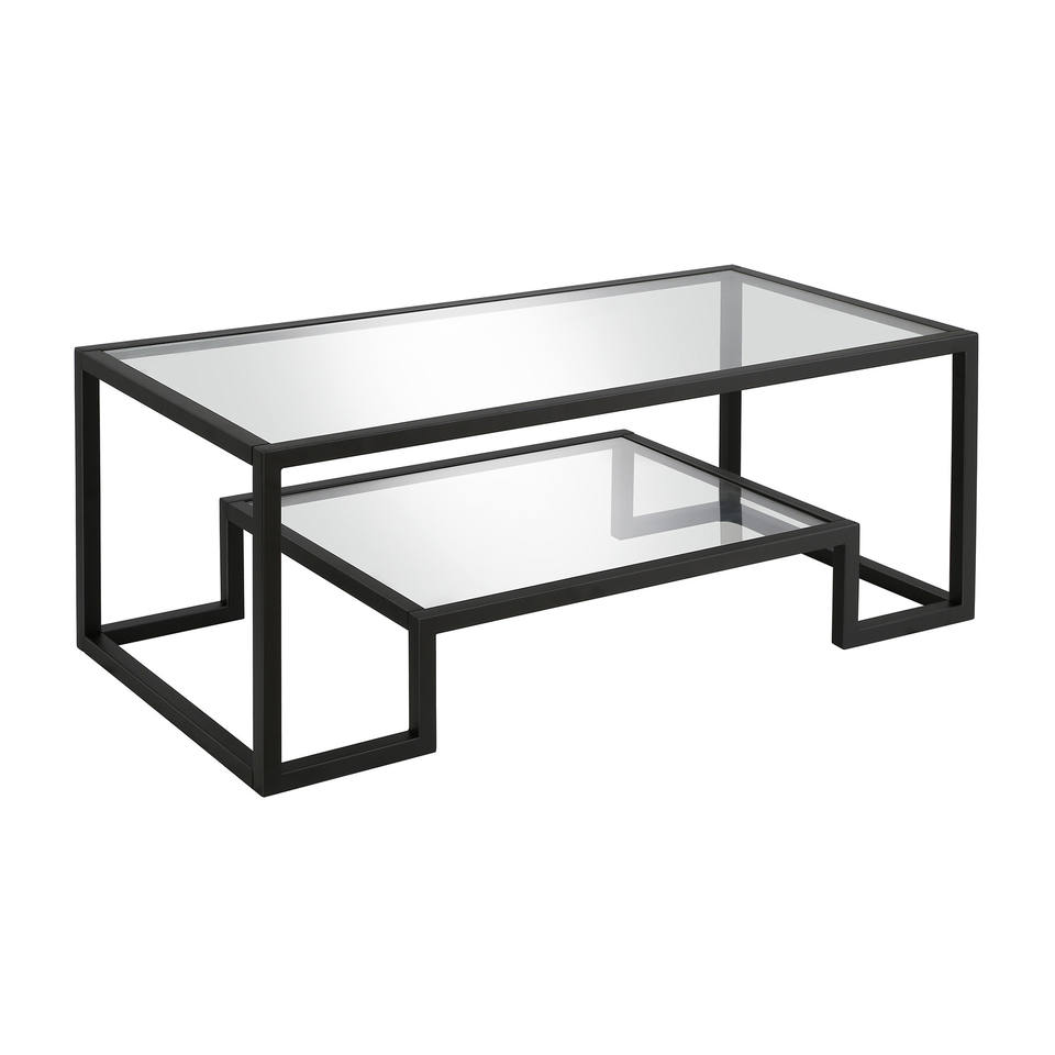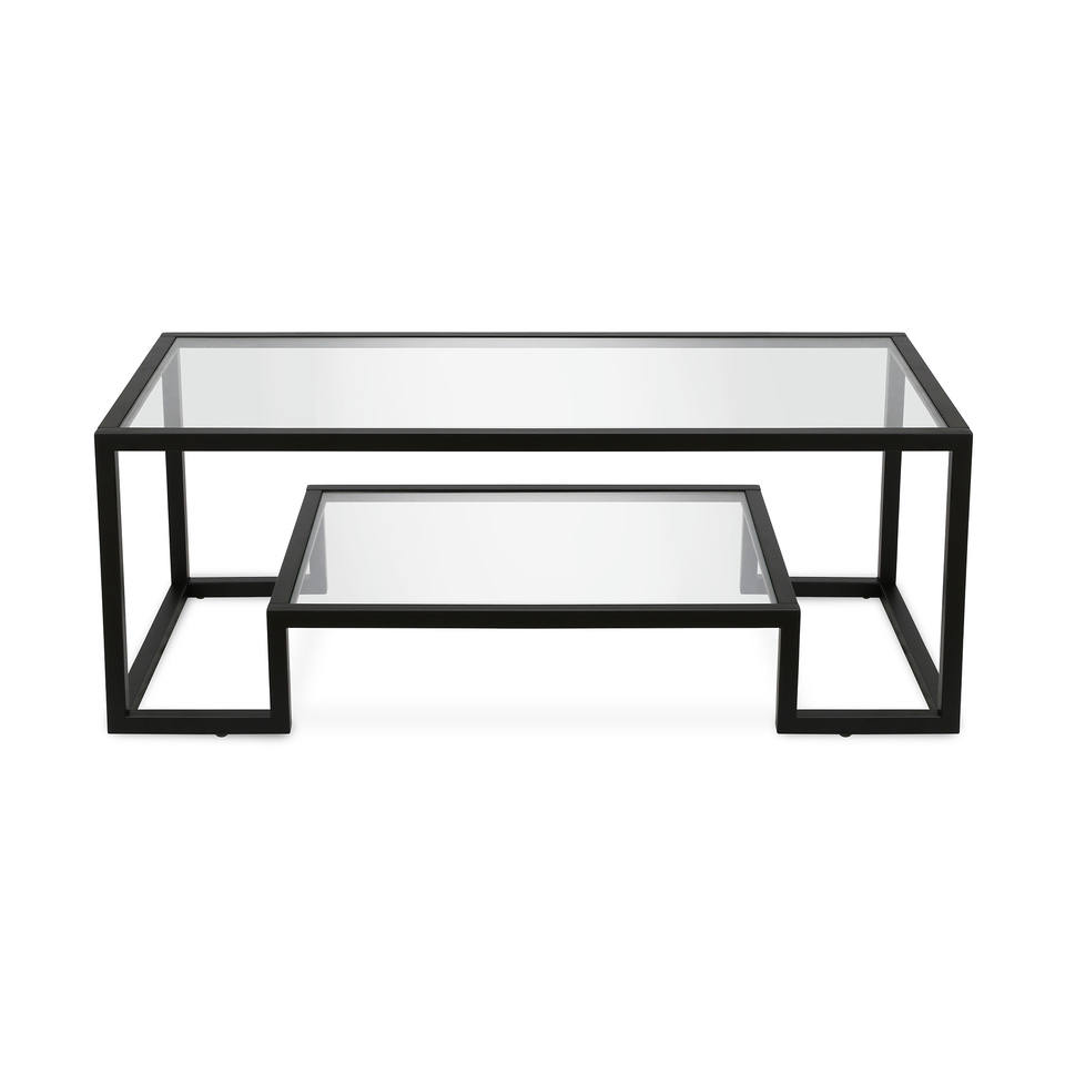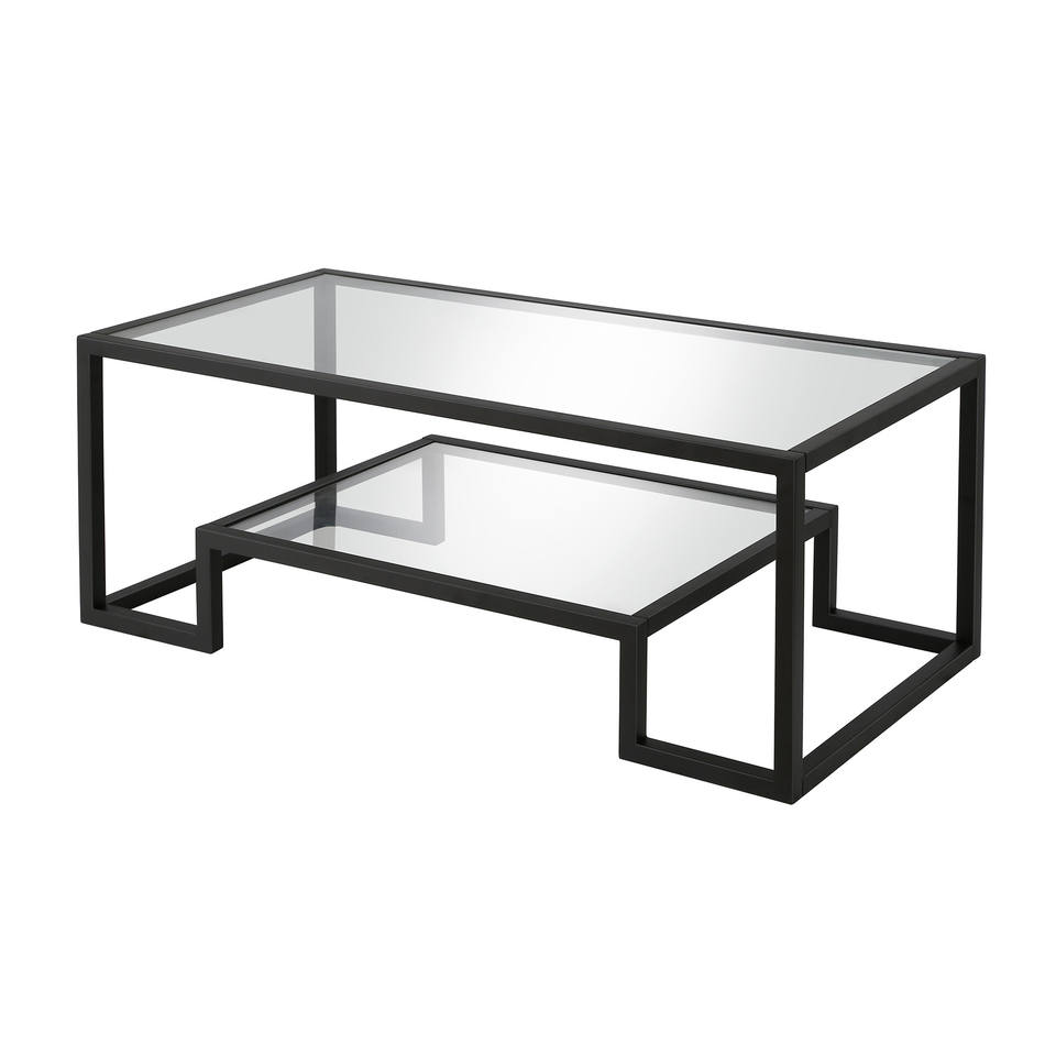 HMS 45 Clear and Black Glass and Steel Sled Coffee Table with Practical Shelf