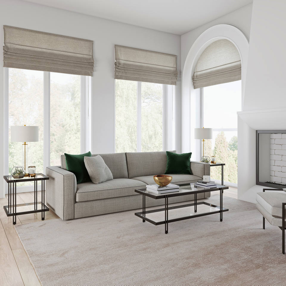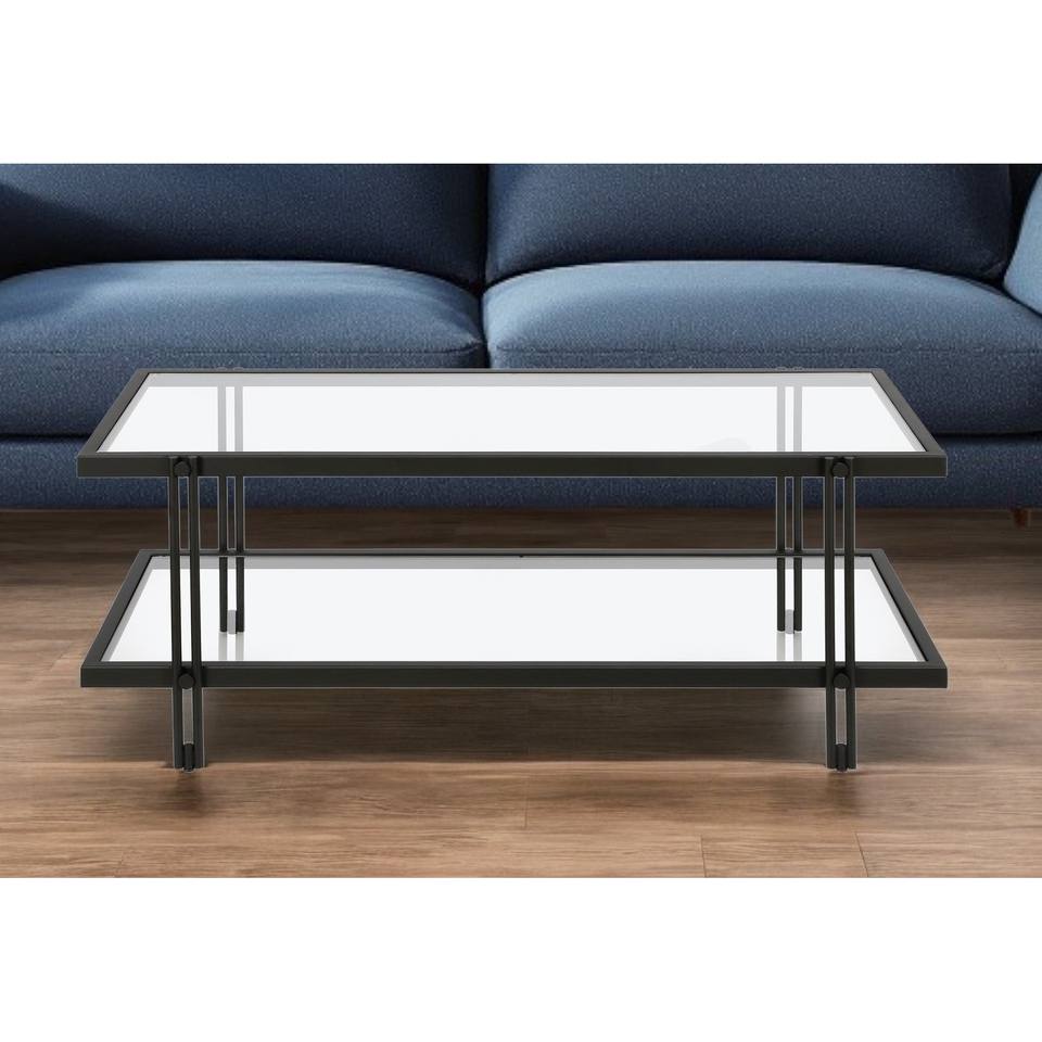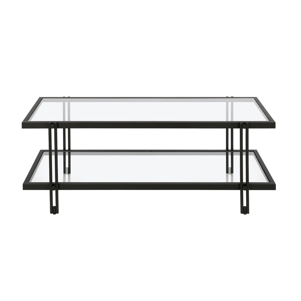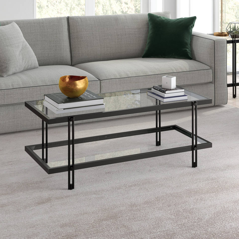 HMS 45 Modern Simple Black Glass and Steel Coffee Table with Shelf Tempered Glass Farmhouse Style for Living Room