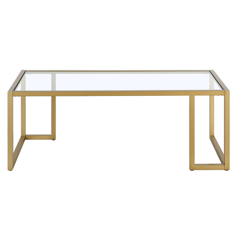 HMS 45-Scandinavian Design Gold Glass and Steel Coffee Table Living Room Furniture with Metal Frame Home Furniture