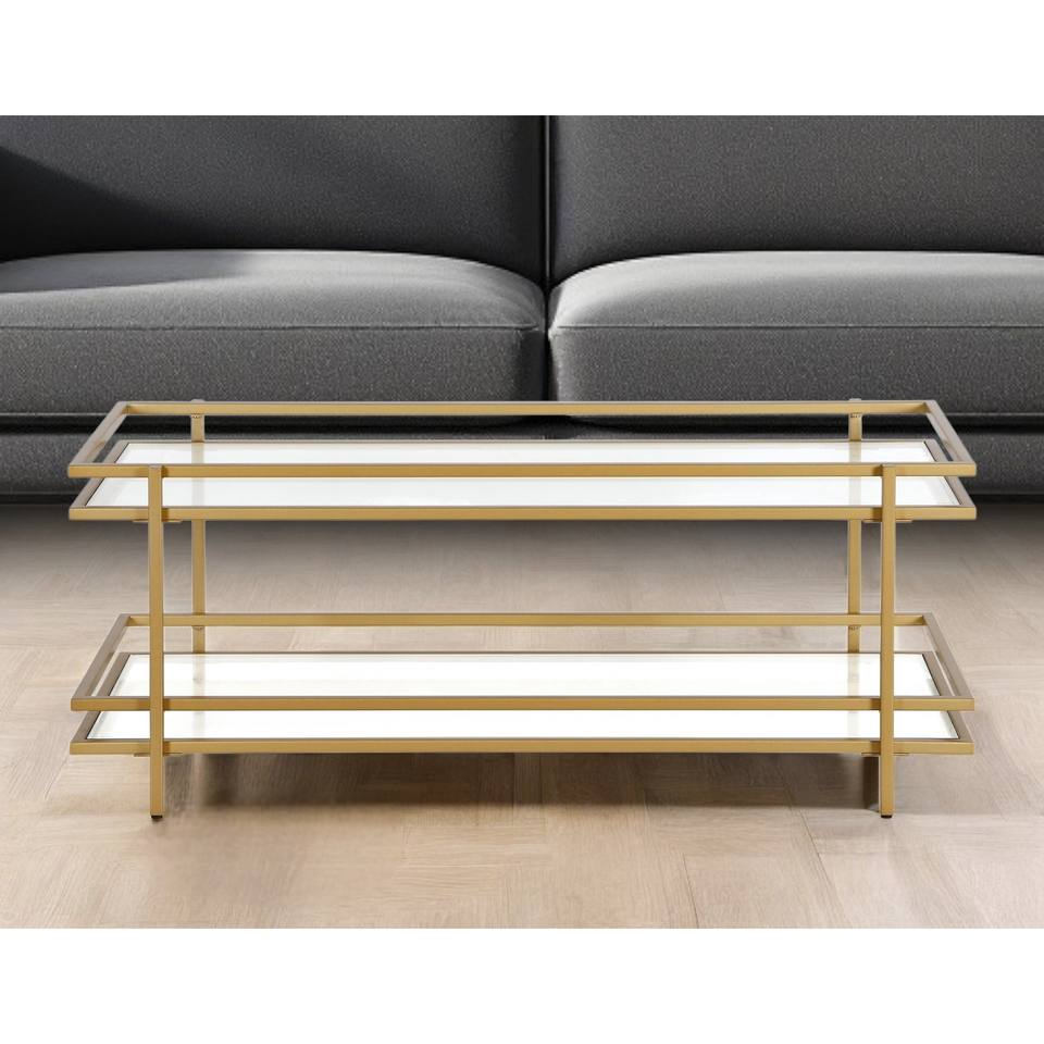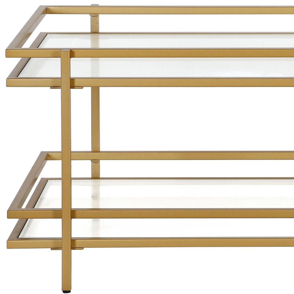 HMS 45 Tea Table Gold Glass Steel Tempered Glass Top with Brass Living Room Furniture with Shelf for Coffee Living Room Use