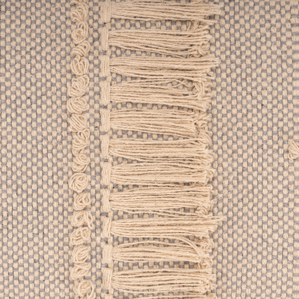 HMS 47\" Cream and Black Leg Abstract Stripe and Dot Upholstery Bench for Living Room