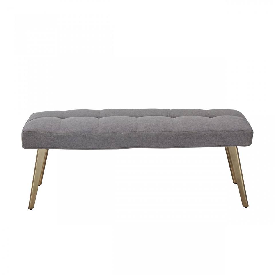 HMS 47\" Gray Antiqued Brass Tufted Linen Upholstered Dining Bench Modern Style Storage Stool for Bedroom or Living Room Use