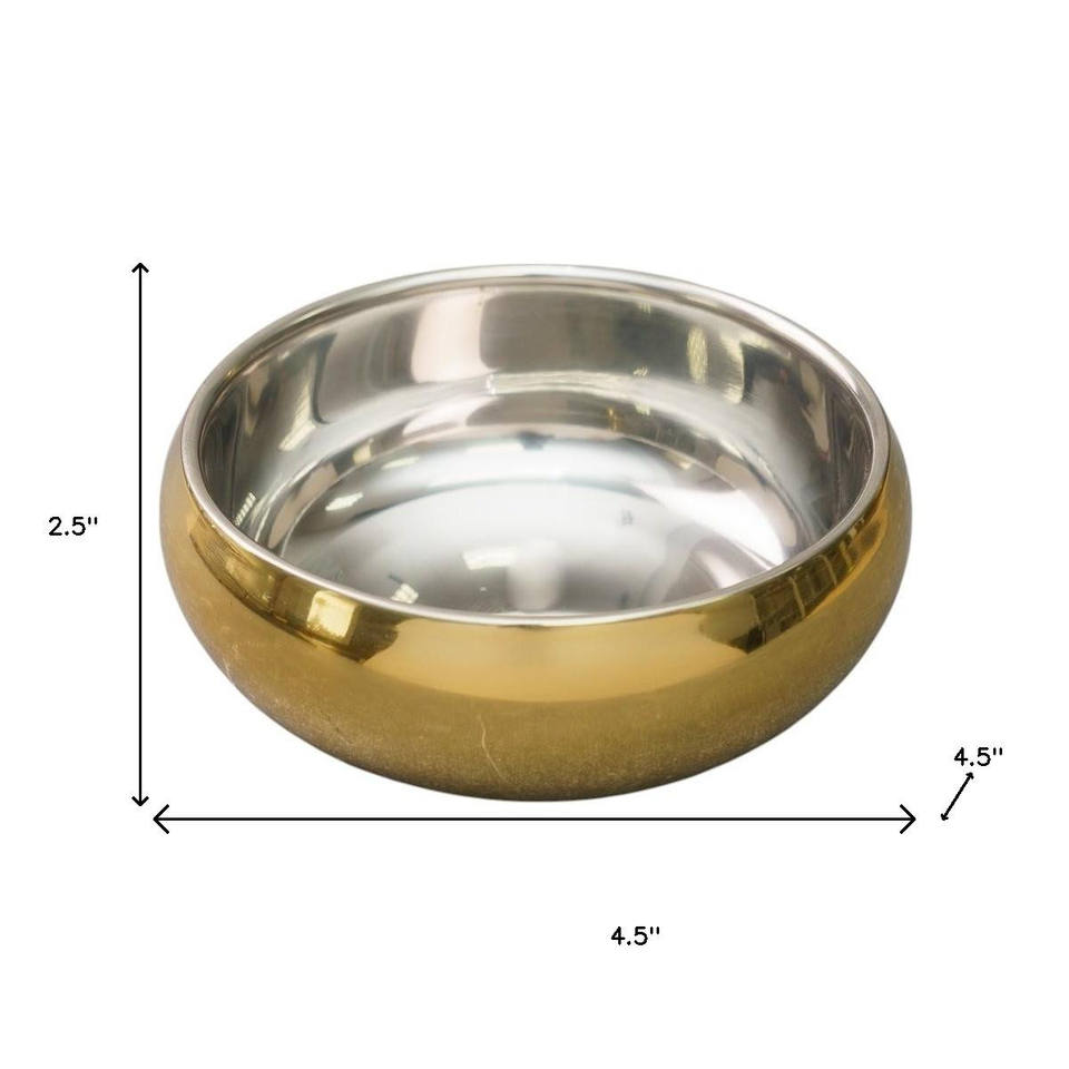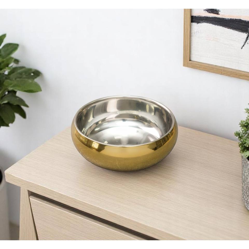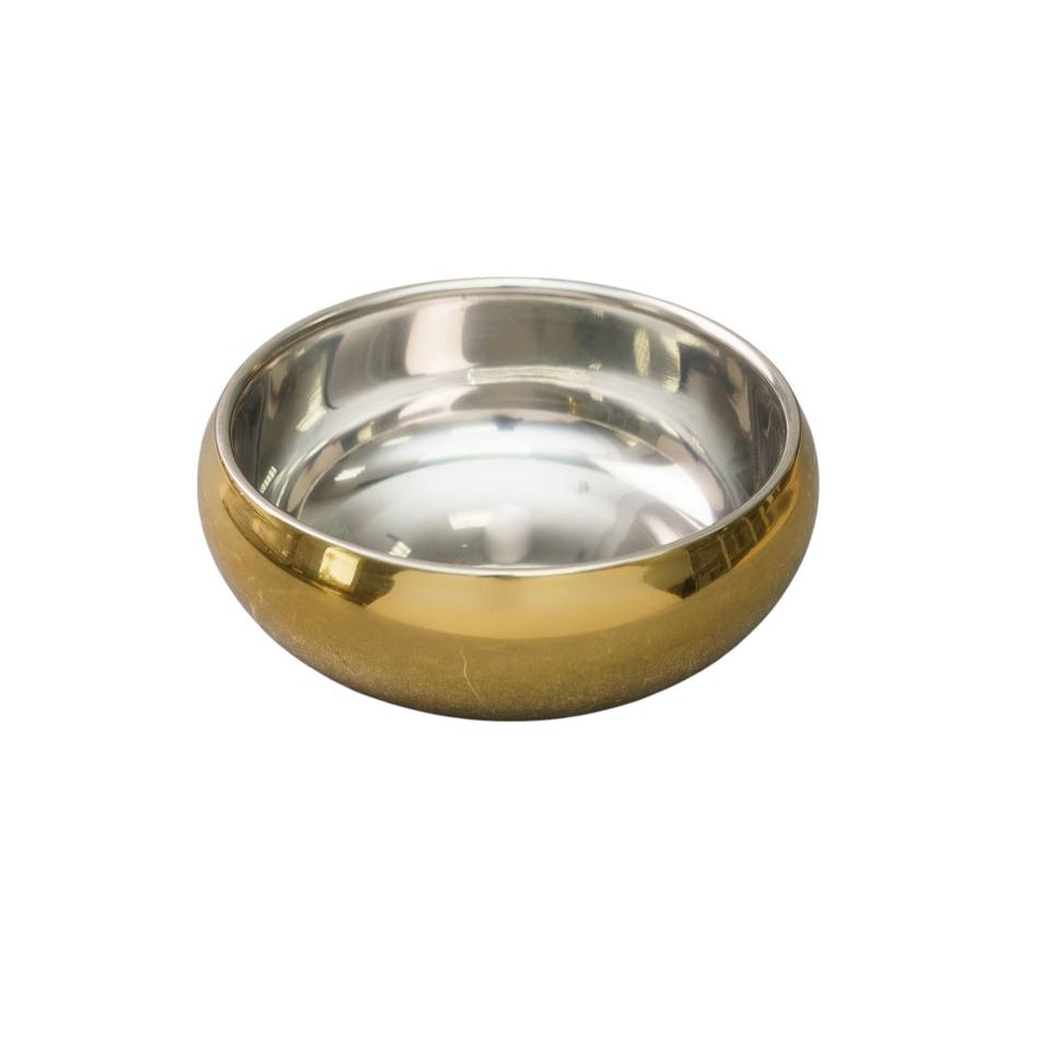 HMS 5\" Dual Wall Round Bowl in Gold and Silver Stainless Steel for Candies or Nuts