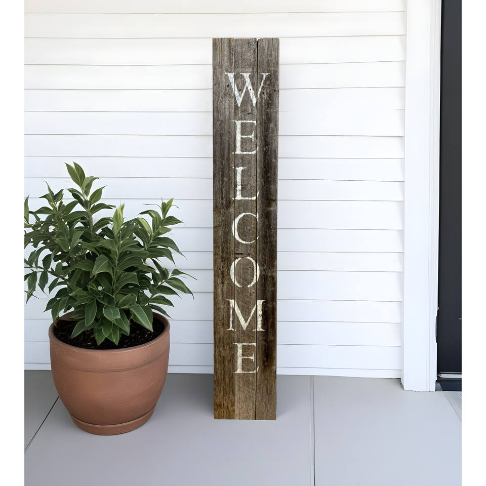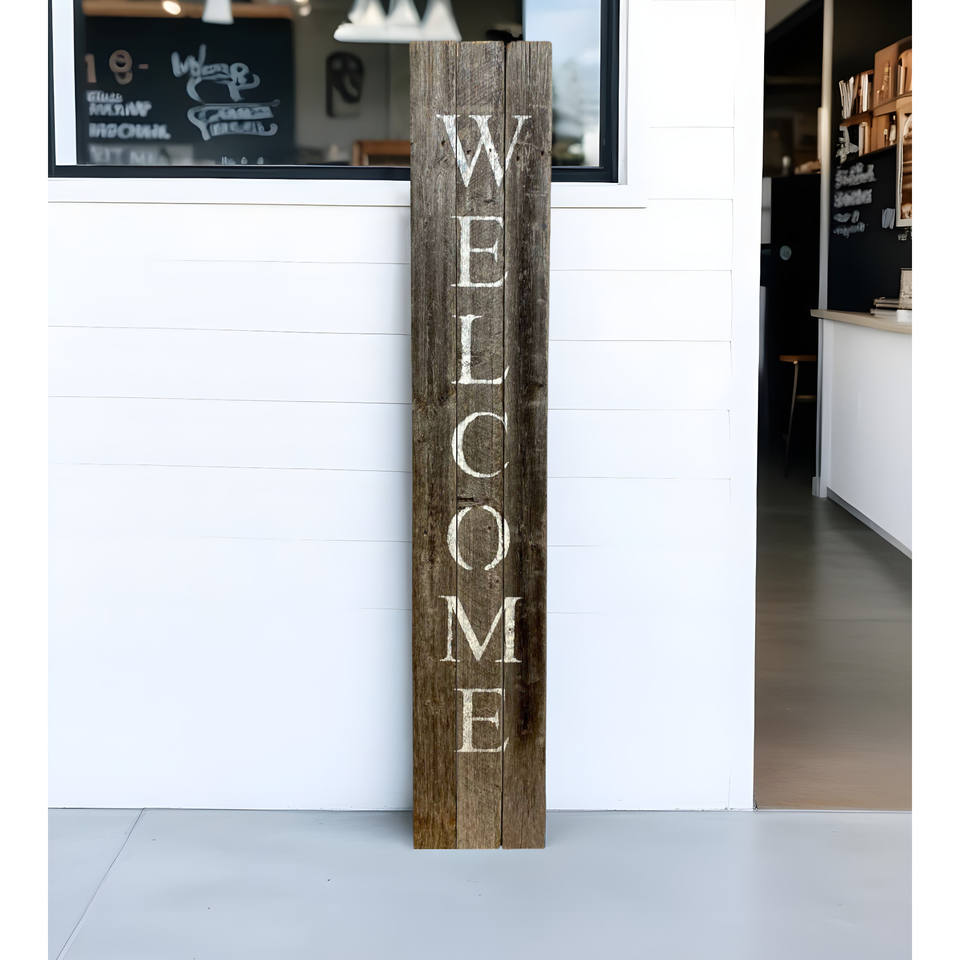 HMS 5' Rustic Dark Gray White Wood Porch Welcome Sign Business Gift for Dad Mom Pine Wood Crafts for Mother's Day Father's Day