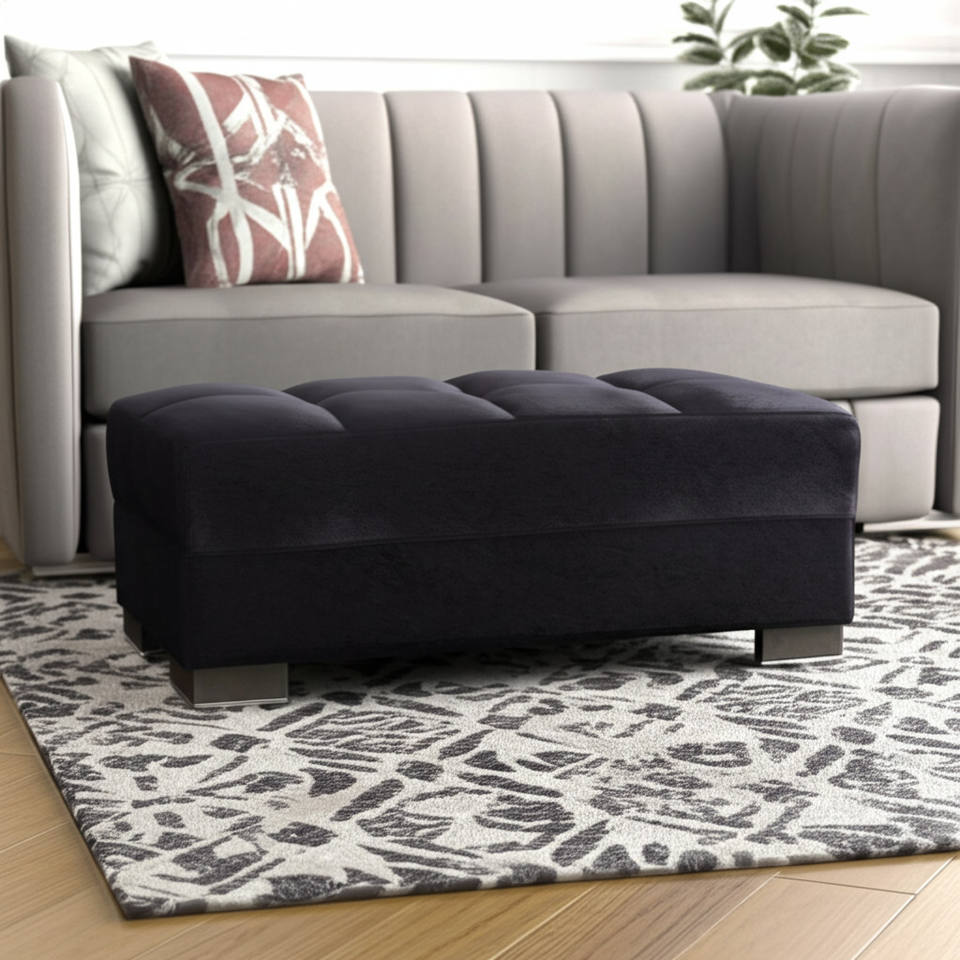 HMS 52\" Black and Brown Microfiber Tufted Storage Ottoman Square Leather Footstool for Bedroom or Hospital Use