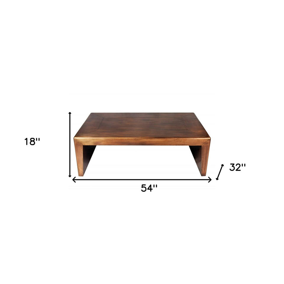 HMS 54\" Solid Wood Metal Frame Coffee Table Copper-Brass Finish Farmhouse Design for Living Room Home Featuring Mango & Oak