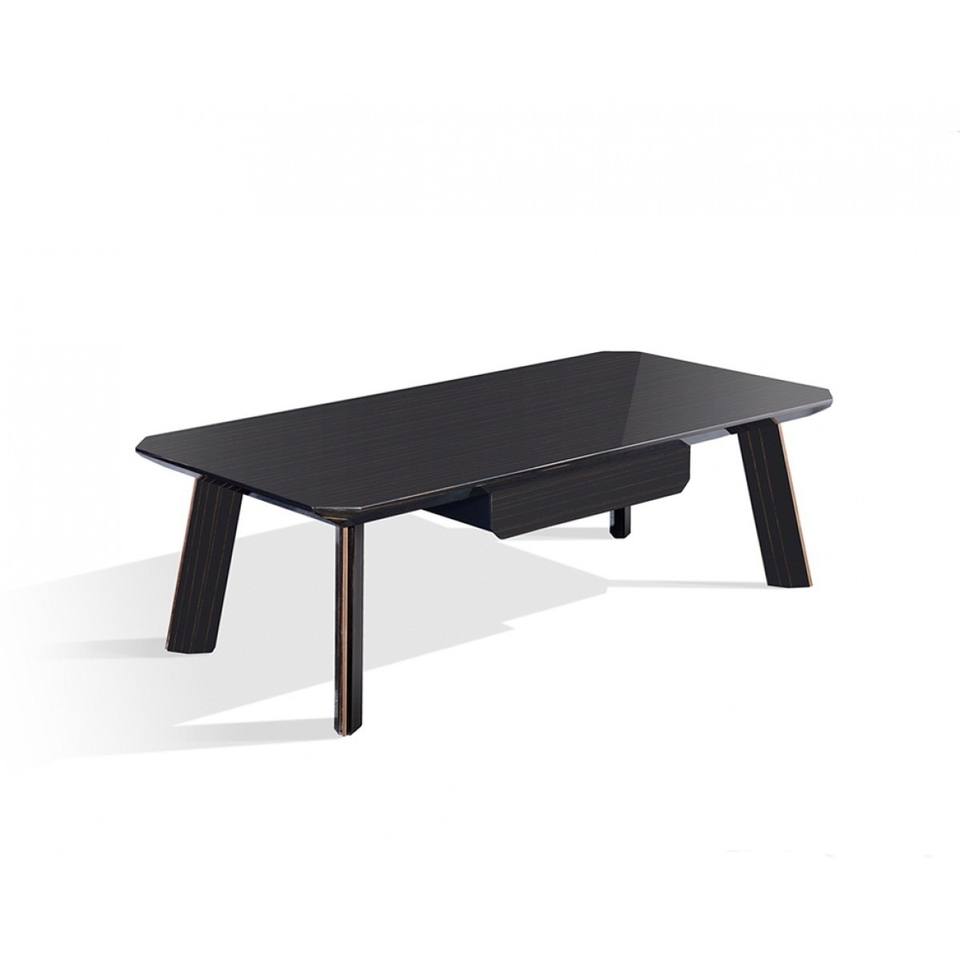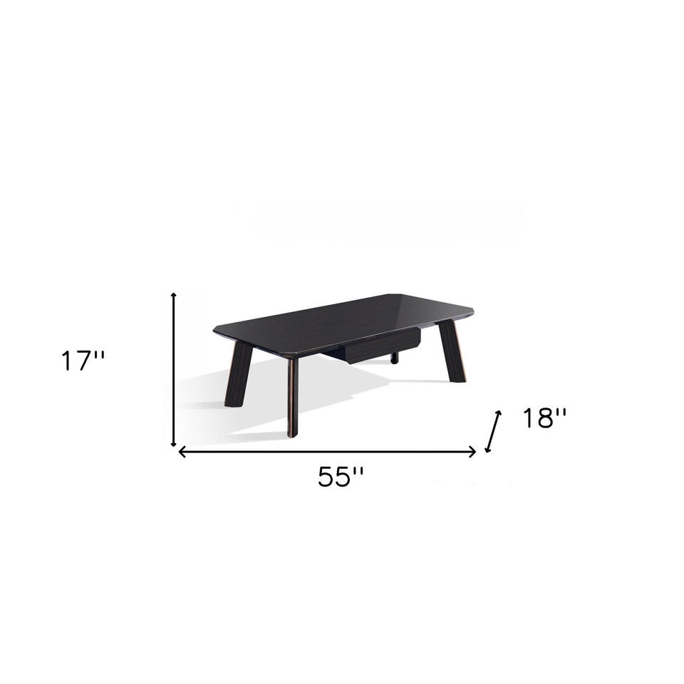 HMS 55 Coffee Table with Drawer Featuring Ebony and Dark Brown Wood Stainless Steel Stylish Design