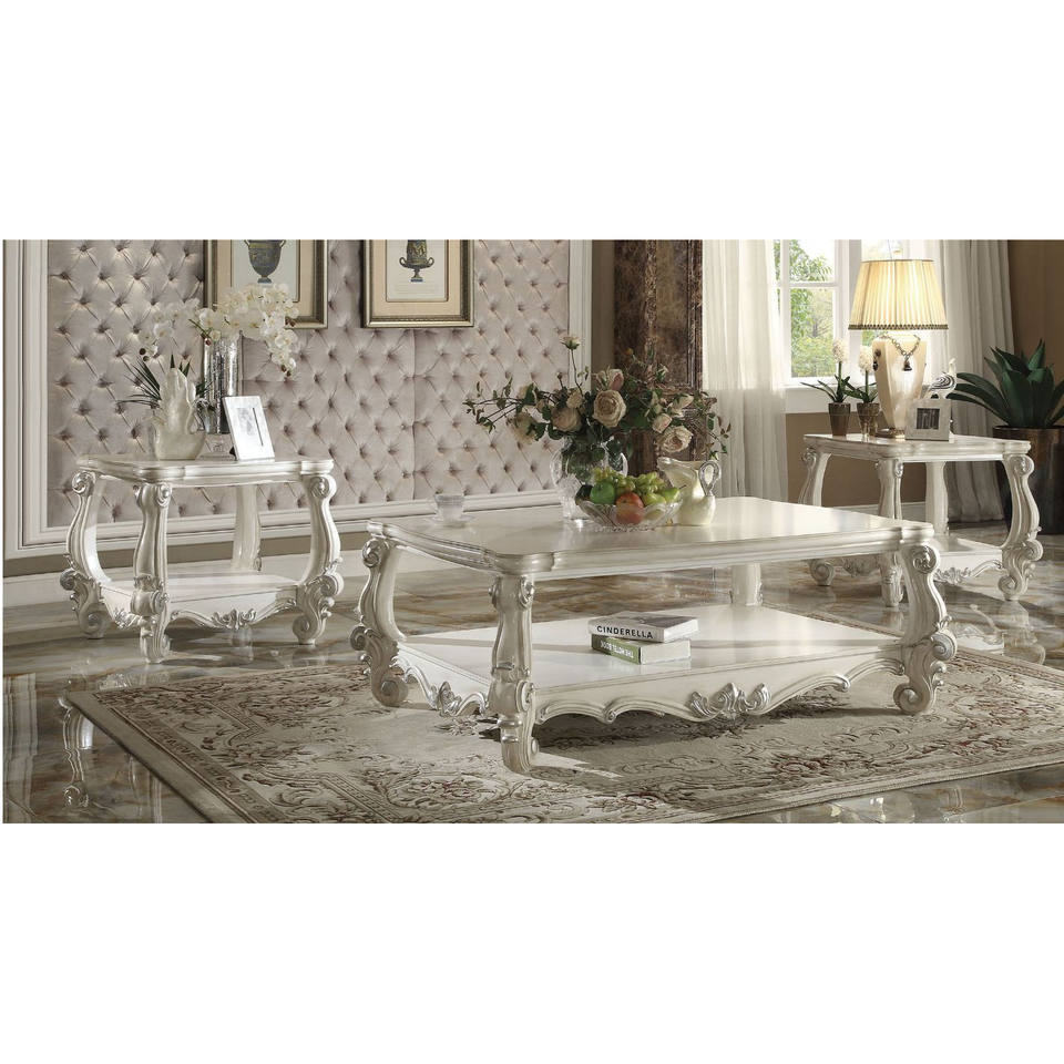 HMS 57 Antiqued White Oak Wood Coffee Table Farmhouse Style End Table with Shelf for Living Room Rectangle/Oval Pattern