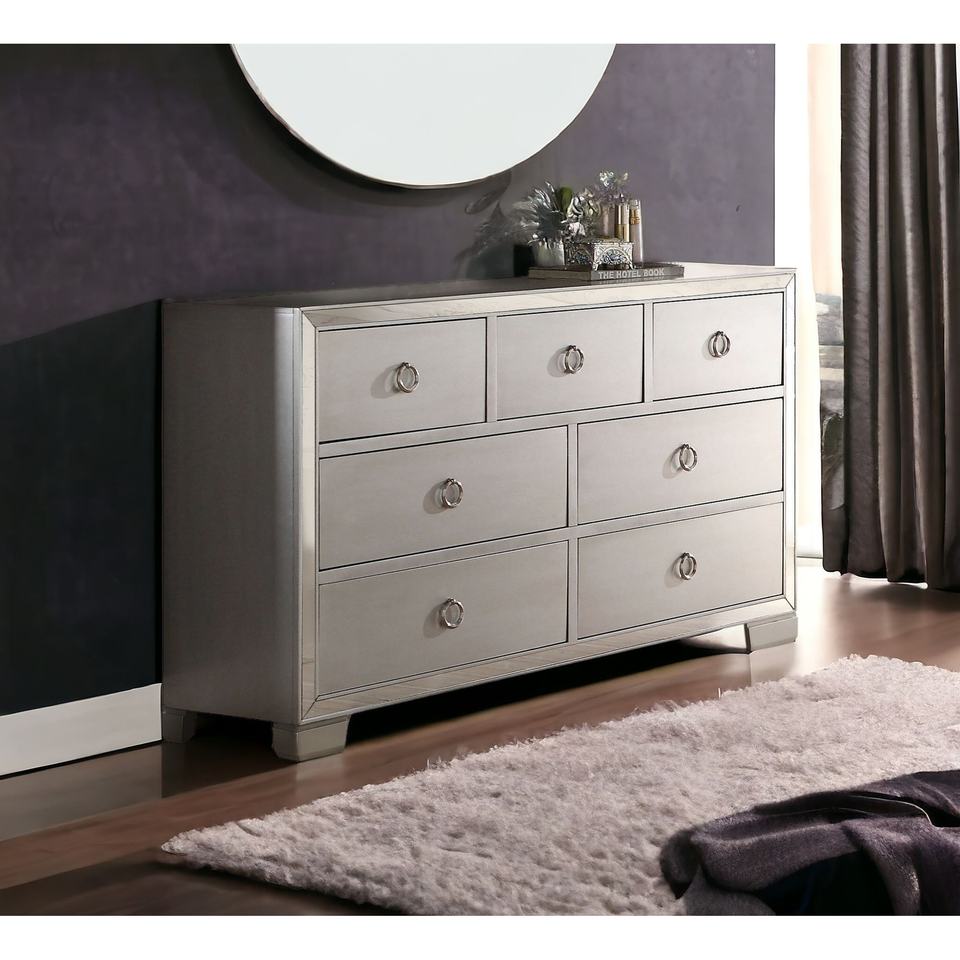 HMS 57 Platinum Solid and Manufactured Wood Seven Drawer Triple Dresser Premium Bedroom Set