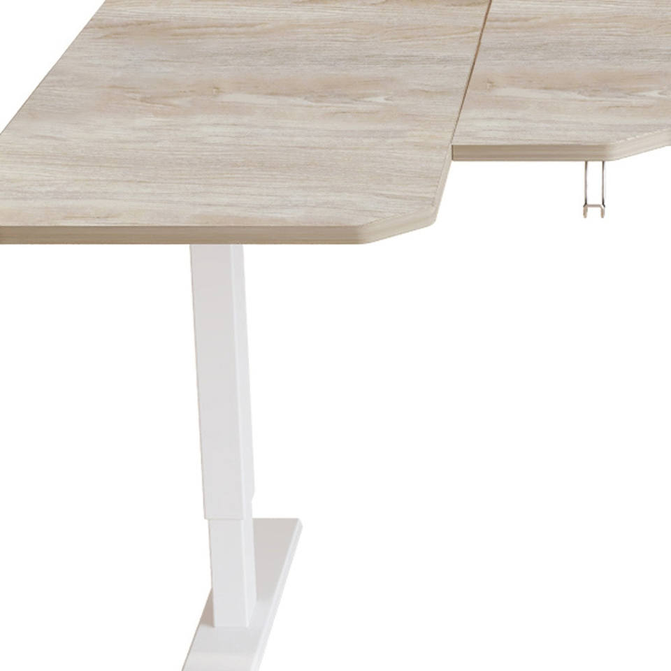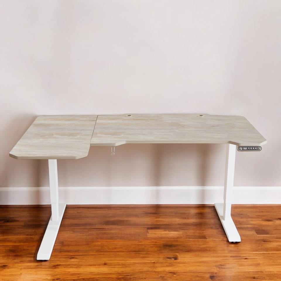 HMS 59 Adjustable Light Khaki and White L-Shape Standing Desk for Office Use