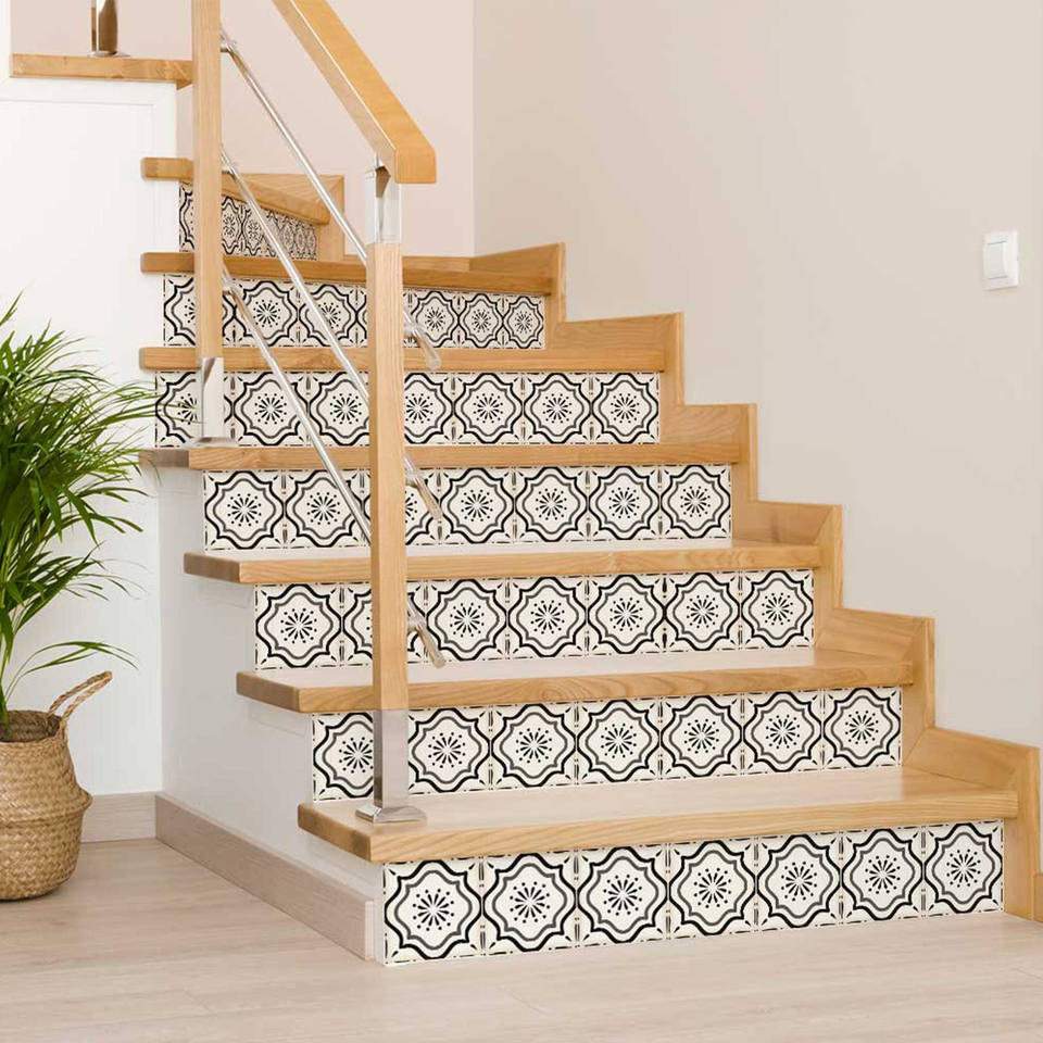 HMS 7\" X 7\" Modern Peel and Stick Removable Wall Tiles Black and White Stone Mosaic for Kitchen Bathroom Hotel Interiors