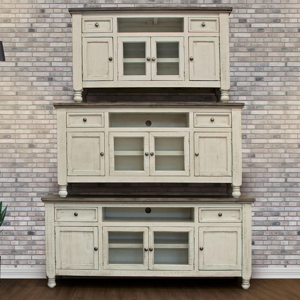 HMS 70 Ivory Solid Wood Enclosed Storage Distressed TV Stand