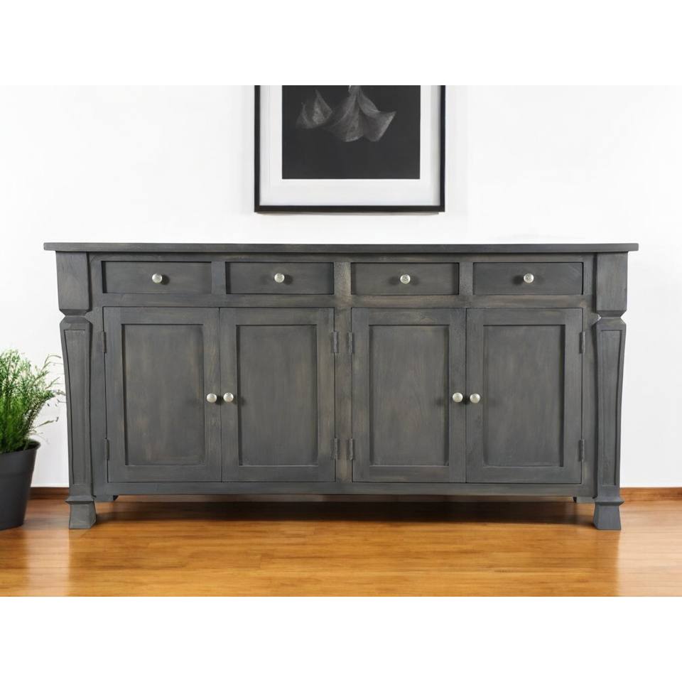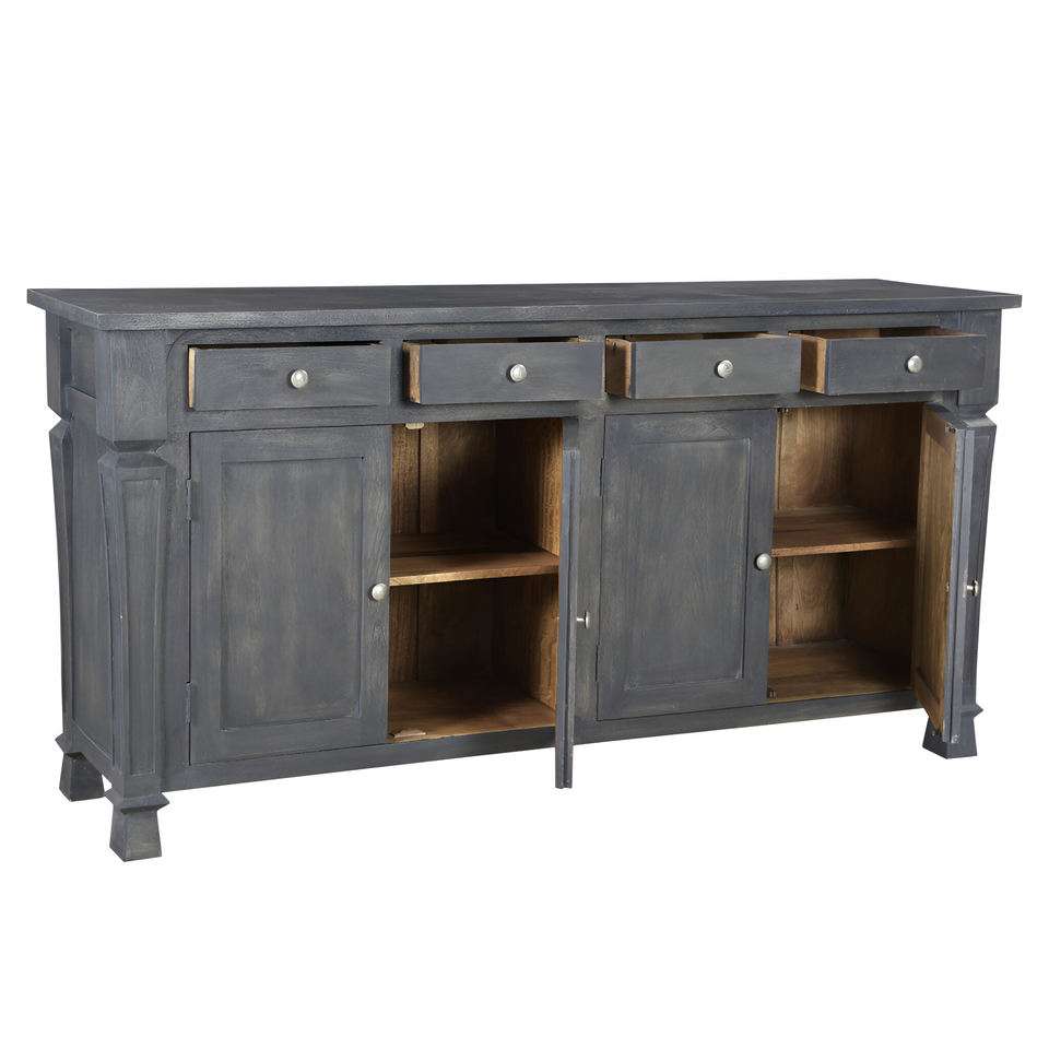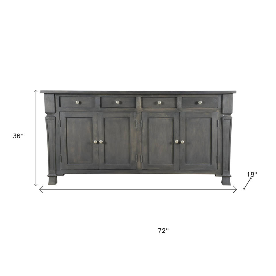 HMS 72\" Dark Gray Solid Wood Four-Drawer Sideboard Cabinet Modern Antiqued Traditional Design for Home Furniture Four Doors