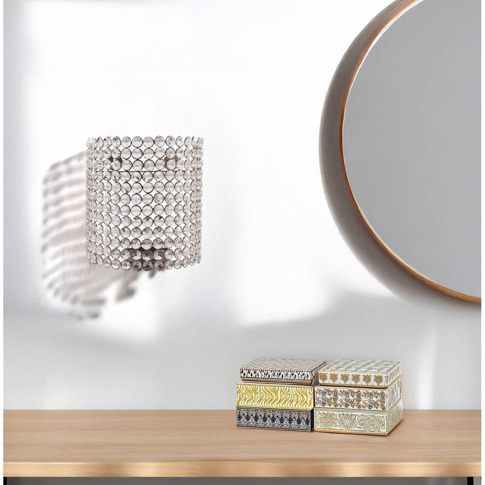 HMS 8 "สีเงินมินิมอลและสีใสประดับด้วยคริสตัลเชิงเทียนติดผนังที่วางเทียนตัวเครื่องทองแดงแสงสีขาวอบอุ่นสำหรับใช้ในบ้าน