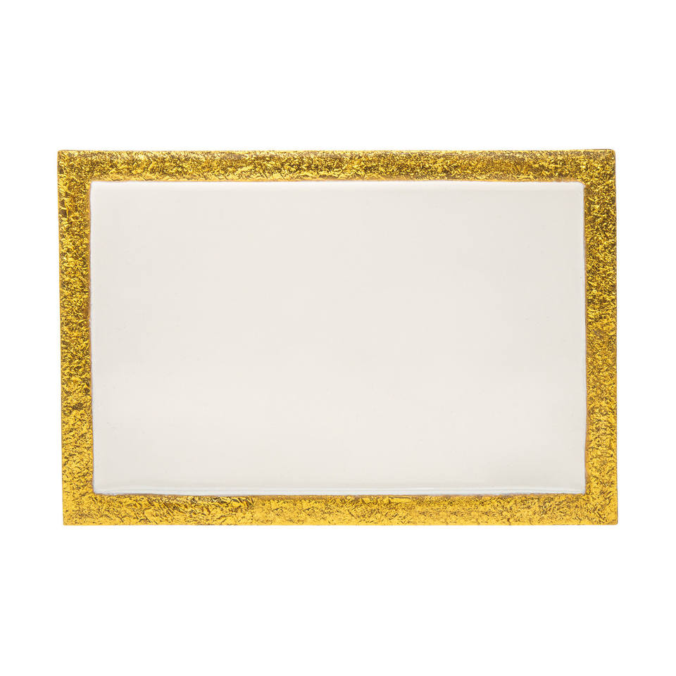 HMS 9\" Gold and White Rectangular Decor Tray Plastic Metal Serving Tray for Home Food Storage and Serving Arabian Style