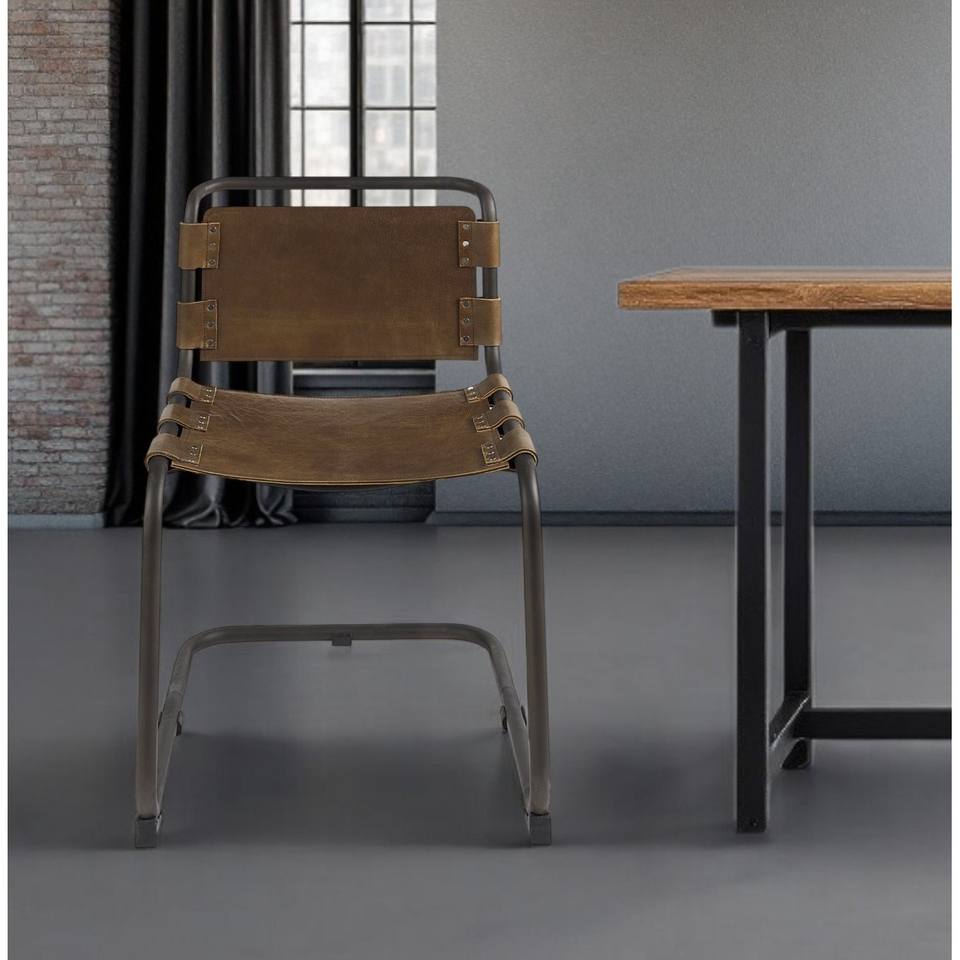 HMS Brown Black Leather Metal Open Back Dining Side Chair Farmhouse Contemporary Design for Living Rooms Restaurants Home Office