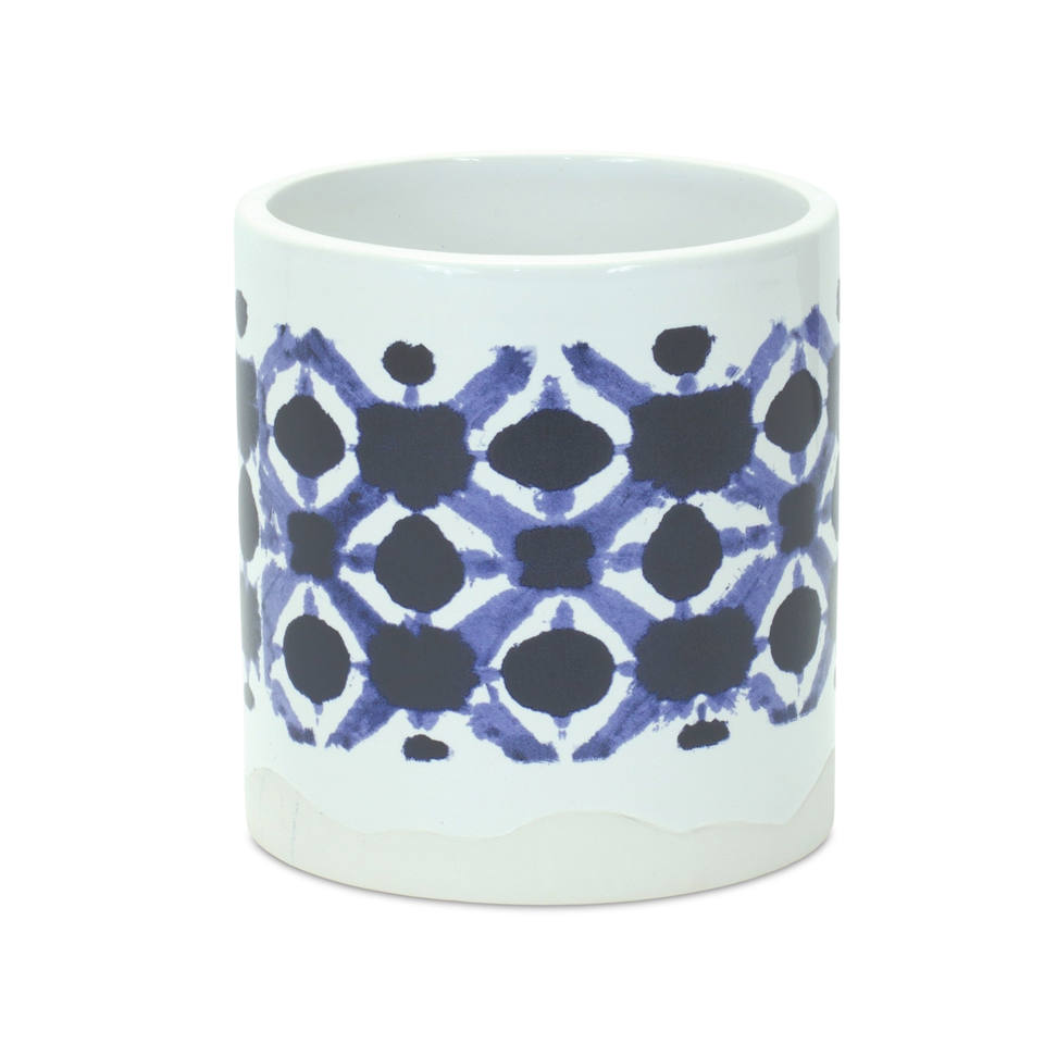 HMS Eco-Friendly Glazed White Ceramic 6\" Round Pot Planter Set of Two Large Outdoor Wall Flower Pot with Square Pattern