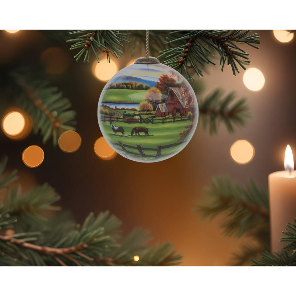 HMS Farm in the Fall Scenery Hand-Painted Mouth Blown Glass Ornament Premium Glass Crafts