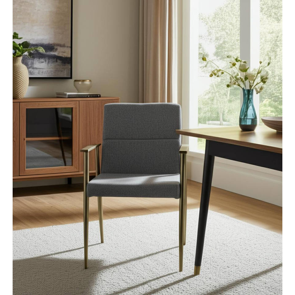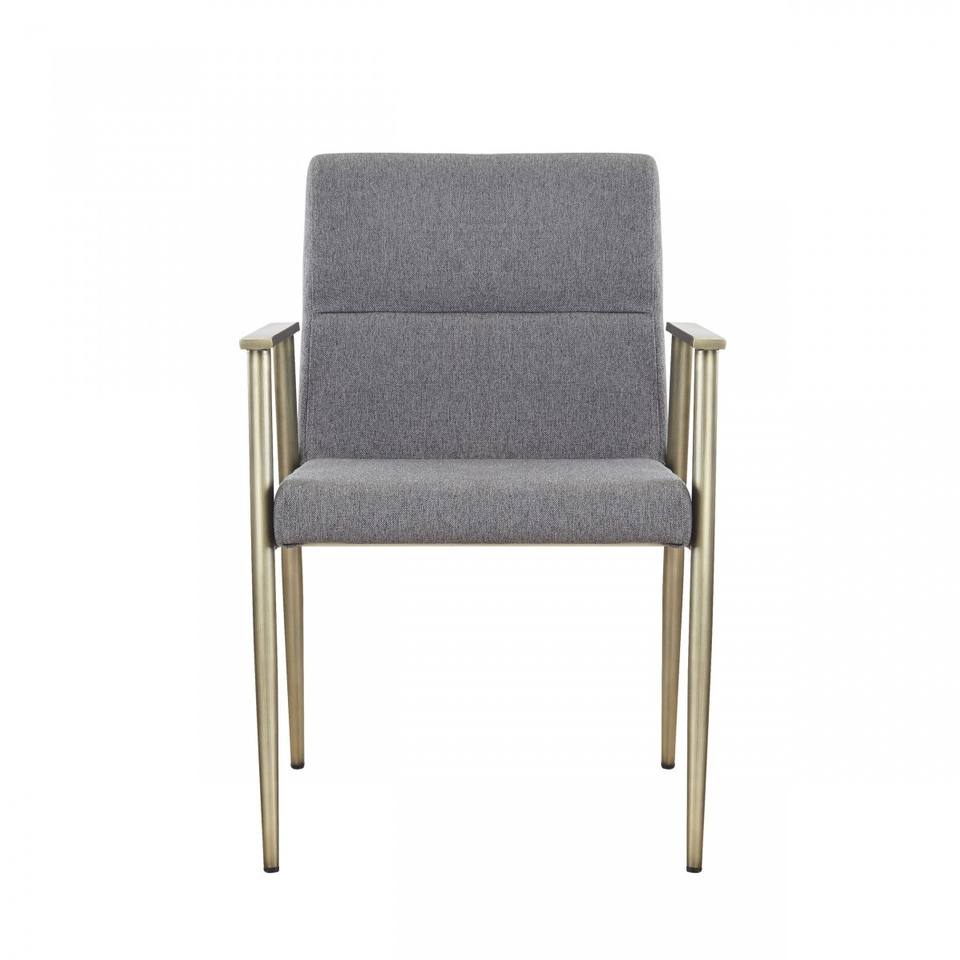 HMS Gray Antiqued Brass Upholstered Fabric Dining Arm Chair Farmhouse for Living Rooms Restaurants Home Office Light Exterior