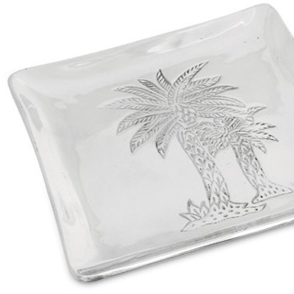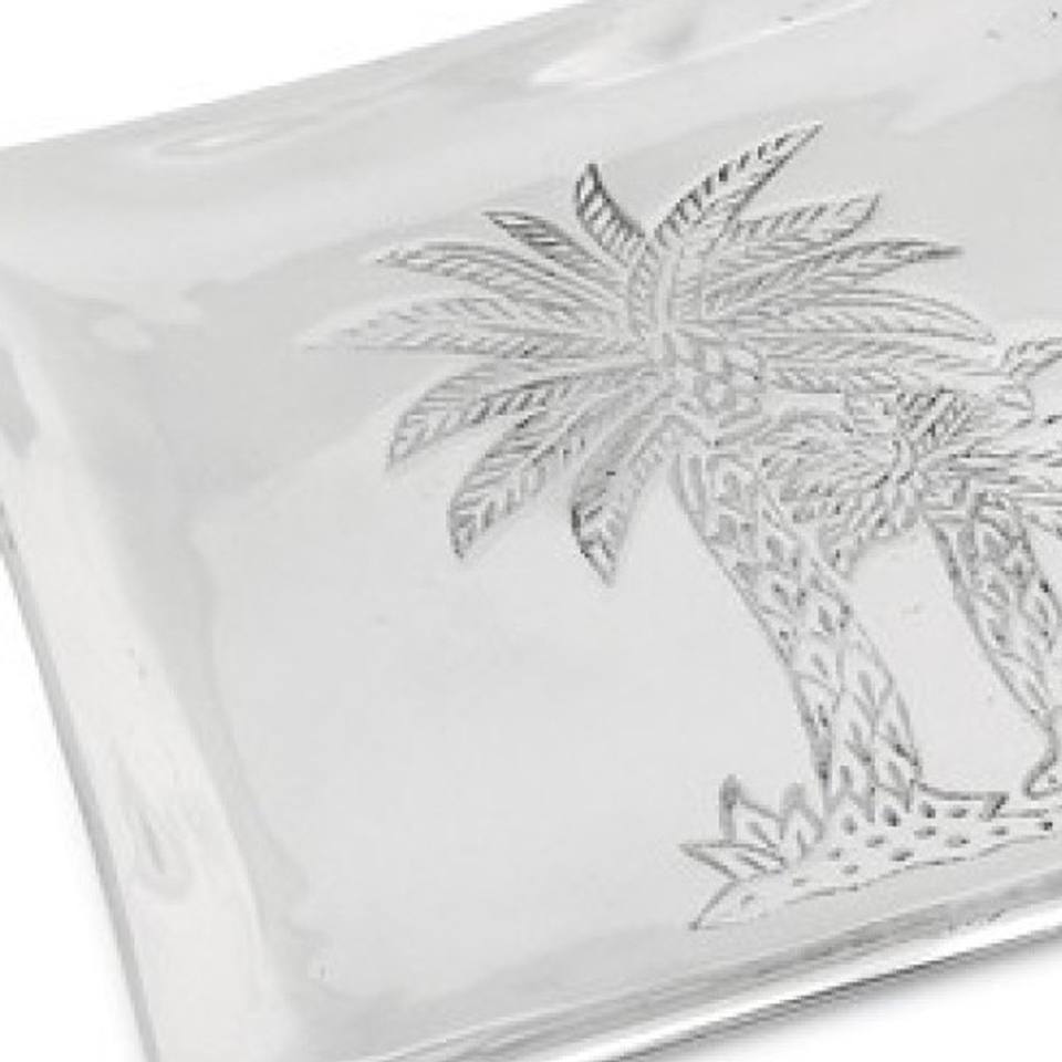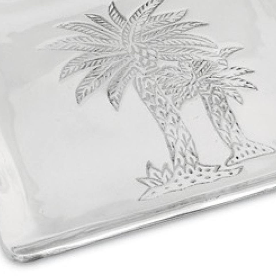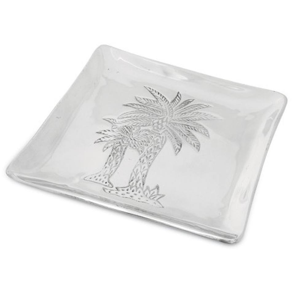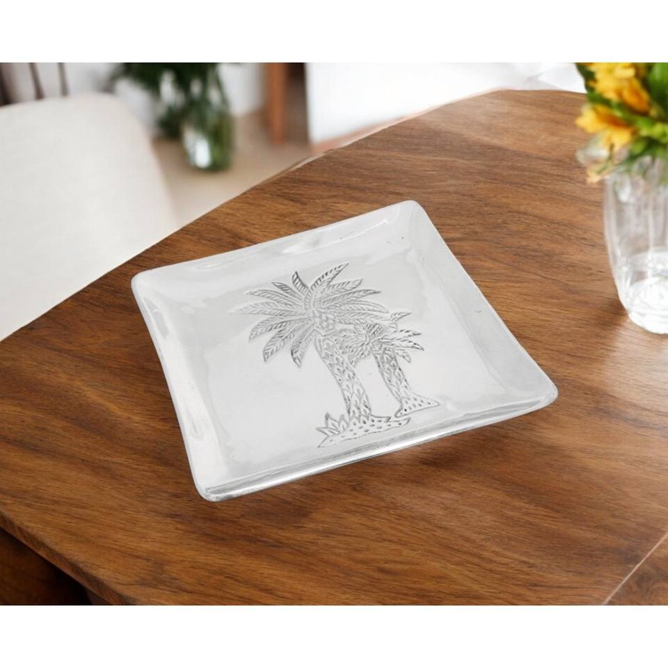 HMS Modern Design Disposable Square Silver Palm Tree Plate 8 Inch Areca Leaf Dishes with Pattern Silver Finish Dinner Plates