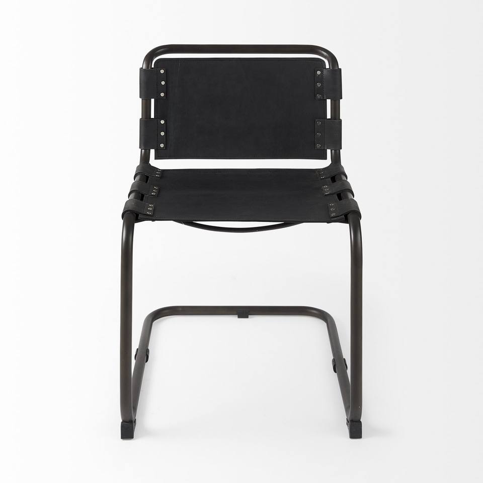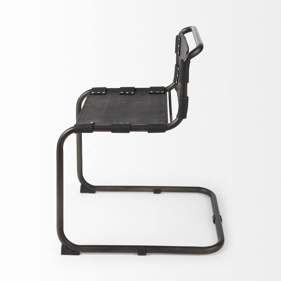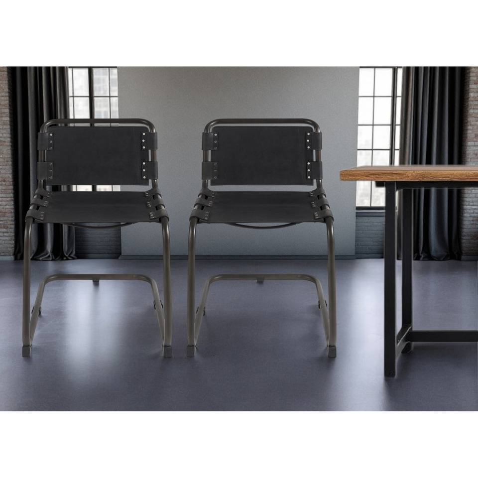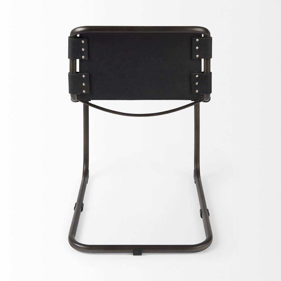 HMS Open Back Dining Side Chair Black Leather Metal Contemporary Farmhouse Style Light Strong Backrest for Home Dining Table Use