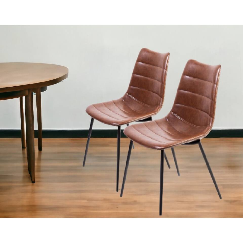 HMS Set of Two Brown and Black Faux Leather Dining Side Chairs Upholstered Side Seats for Modern Dining