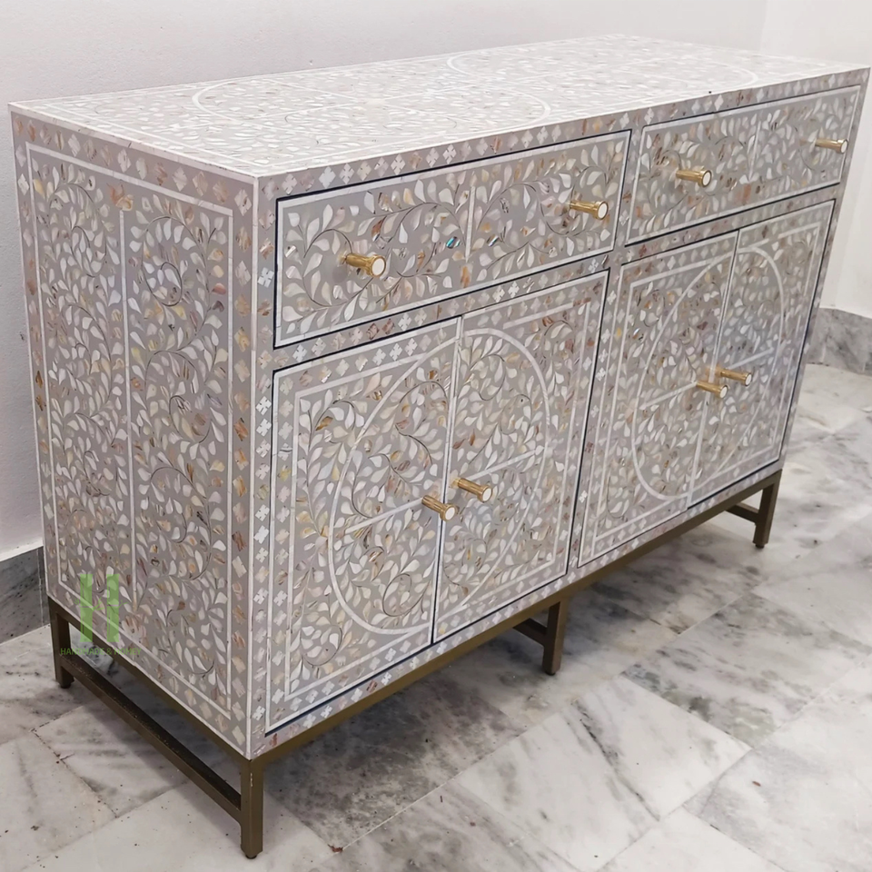 โต๊ะคอนโซลฝังมุก HNH Craft ตู้บุฟเฟ่ต์ฝังมุกสุดหรู โต๊ะกาแฟฝังมุกทำมือ