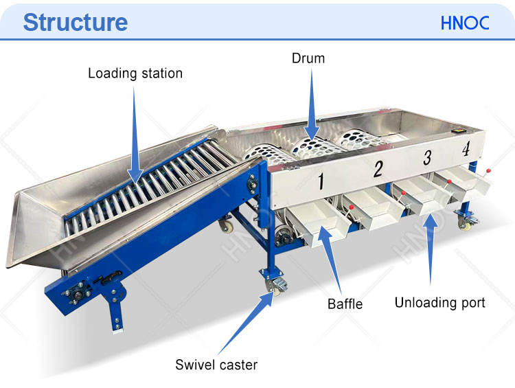 เครื่องคัดแยกผลไม้ HNOC สำหรับมันฝรั่ง มะเขือเทศเชอร์รี่ แอปเปิ้ลขนาดเล็ก ส้ม มะกอกเขียว พร้อมฟังก์ชั่นล้างและคัดแยก