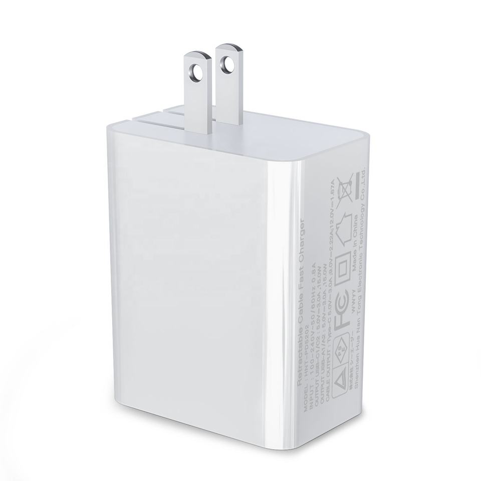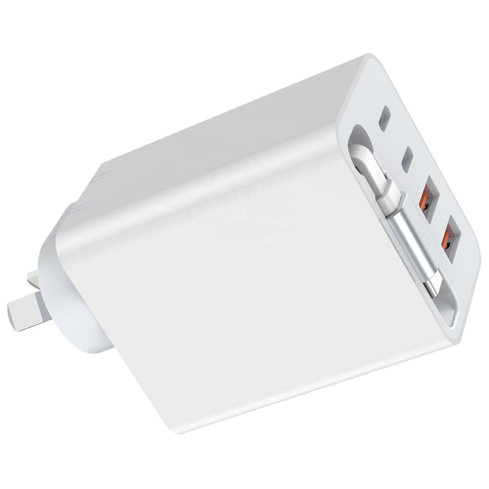 Hnt 50W เครื่องชาร์จ Gan USB แบบชาร์จเร็วสาย70ซม. หดได้ปลั๊ก au/uk/us/eu สำหรับ iPhone 17/16/15/14 PRO MAX