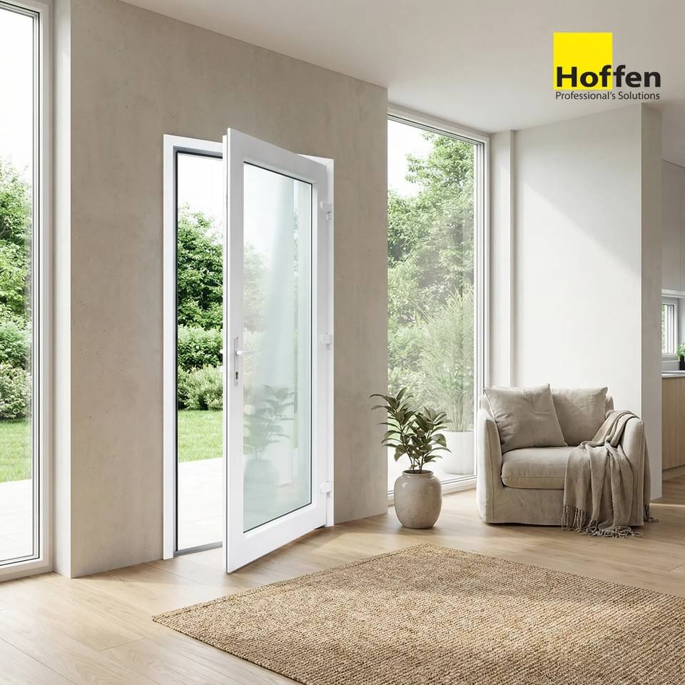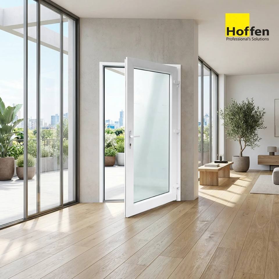 ประตูบานเปิดกระจก uPVC ยี่ห้อ HOFFEN ขนาด 81x205 ซม. กันเสียง กันน้ำ ป้องกันความร้อน ผลิตในประเทศไทย