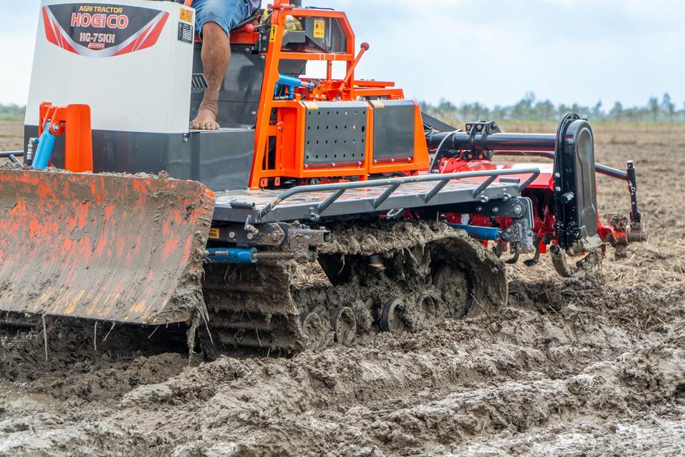 Hogico รถแทรกเตอร์ตีนตะขาบ4WD 70HP HG-75VN ทนทานเครื่องจักรทางการเกษตร3in1ที่มีเครื่องยนต์ดีเซลที่มีประสิทธิภาพสำหรับการขนส่งในฟาร์ม