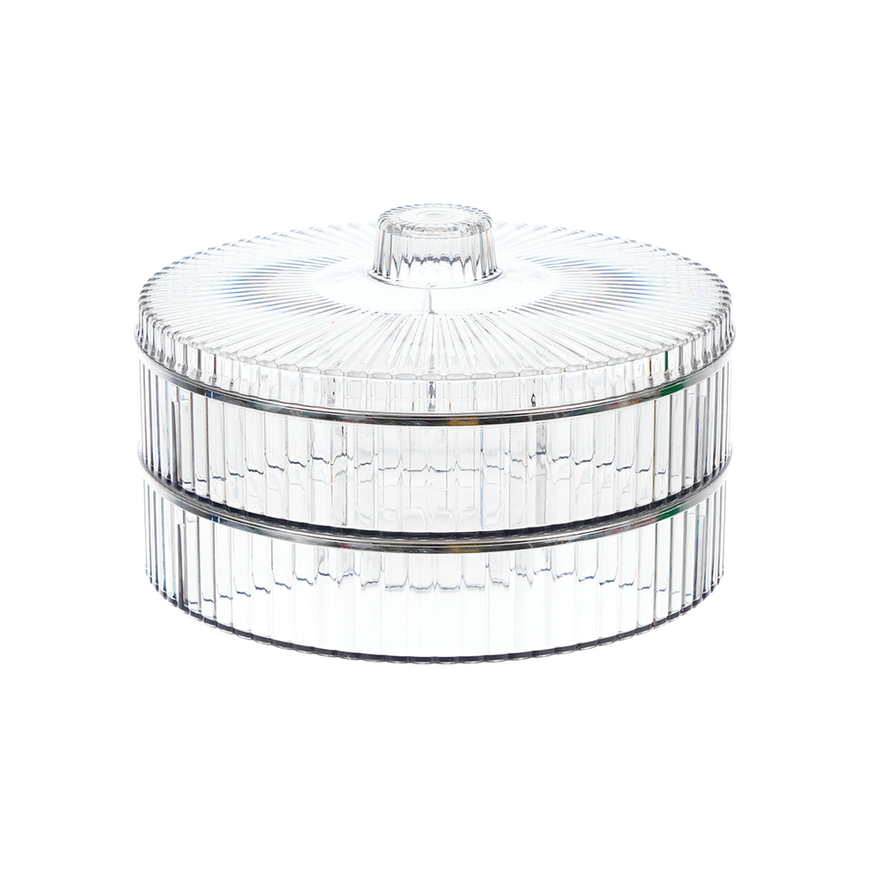 Hokori ถาดขนมกลม2ชั้นพร้อมกล่องลูกอมพลาสติกใสมี4ส่วนสำหรับงานเฉลิมฉลอง Tet และการจัดแสดงที่บ้าน