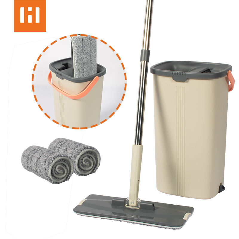 Holamopa ไม้ถูพื้นแบบเรียบตามหลักสรีรศาสตร์พร้อมถังประแจไม่ต้องใช้น้ำดีไซน์จัดเก็บง่าย