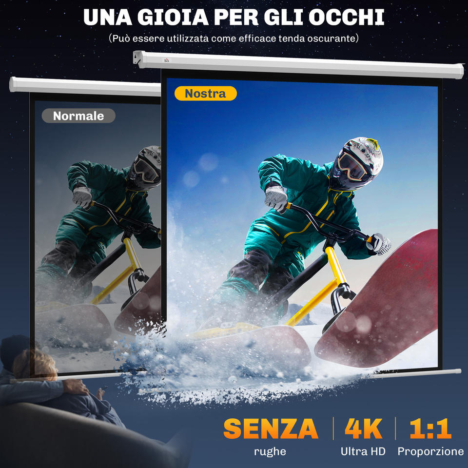 Homcom 85 "จอโปรเจคเตอร์มอเตอร์ที่มีการควบคุมระยะไกล, พลาสติกและโลหะ, 176.5x8x176.5เซนติเมตร, สีขาว