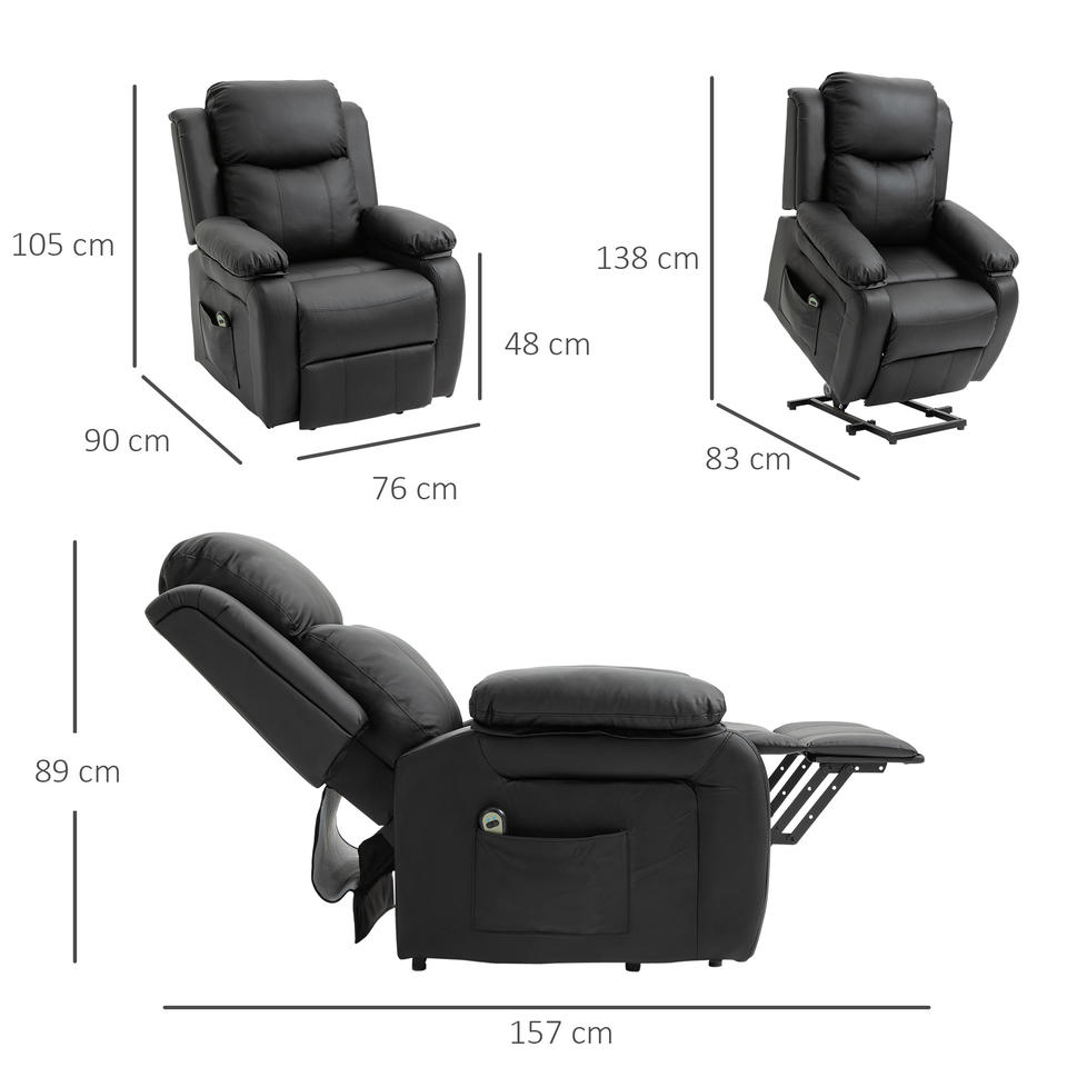 Homcom เก้าอี้ผ่อนคลายไฟฟ้าและเก้าอี้ปรับเอนได้สูงถึง160 ° พร้อมรีโมทคอนโทรลหนังเทียมสีดำ