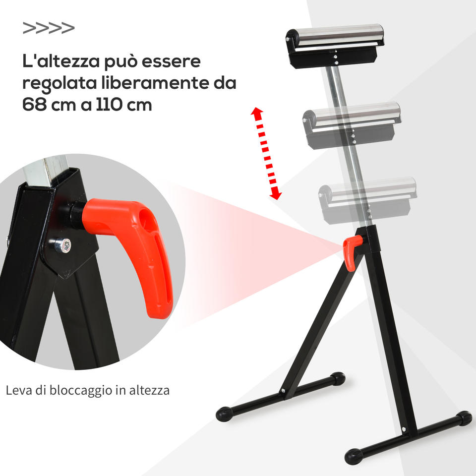 Homcom ขาตั้งลูกกลิ้งโลหะปรับความสูงได้ดีไซน์ให้พับได้และประหยัดพื้นที่44x50x68-110ซม.