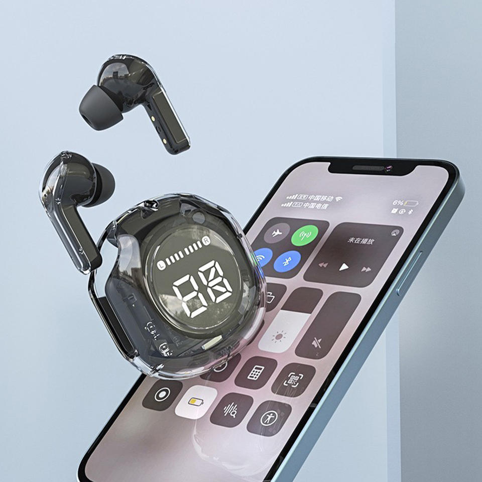 หูฟังไร้สายในบ้านแบบดิจิทัล EP-111-N หูฟังบลูทูธ TWS สีดำสำหรับจอแสดงผล LED หูฟังเอียร์บัด